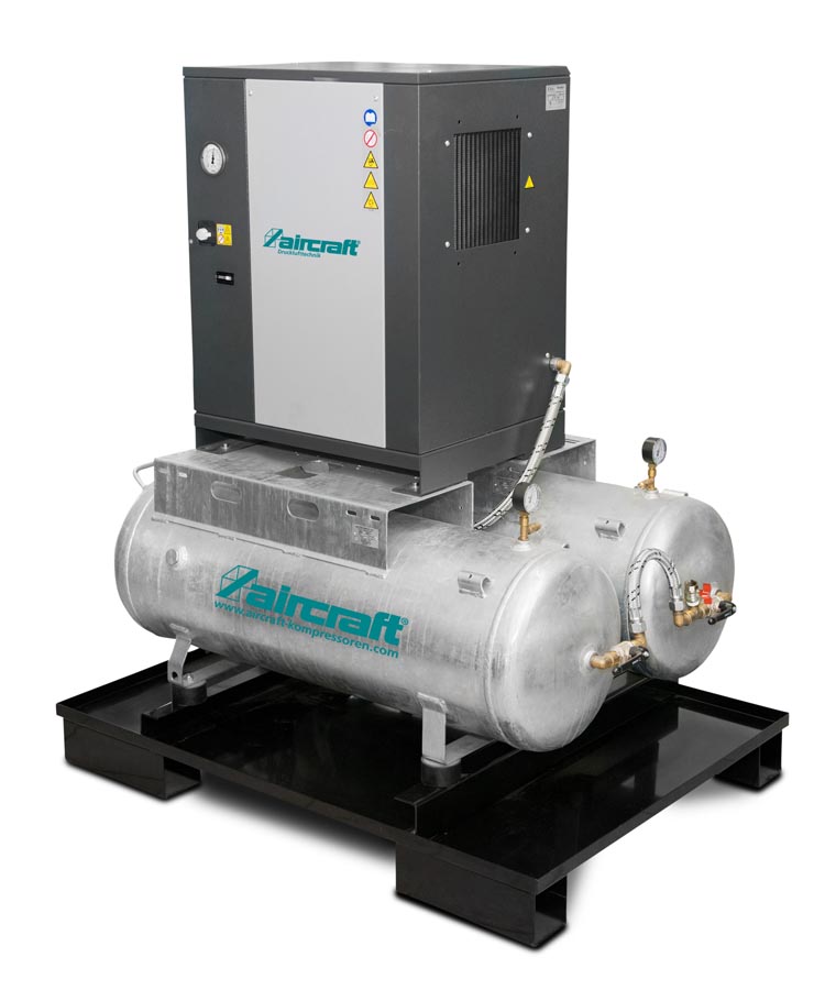 Produktname: Aircraft A-DUO-MICRO SE 4.0-08 2×100 – Schraubenkompressor mit Rippenbandriemenantrieb auf 2 x 100 l Behälter