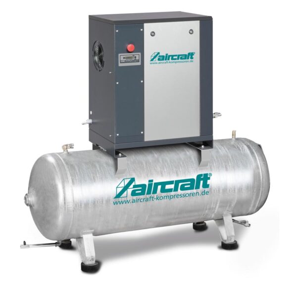 Produktname: Aircraft A-MICRO 4.0-10-200 – Schraubenkompressor mit Rippenbandriemenantrieb auf Behälter