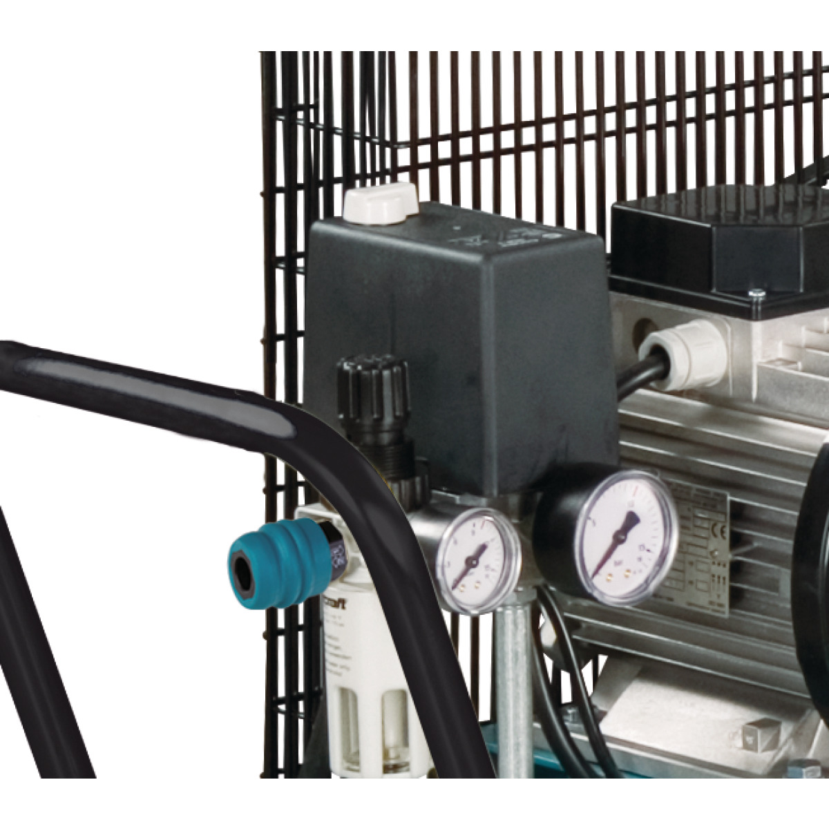- Alle Hauptkomponenten des Kompressors werden durch Bearbeitung mithilfe numerisch gesteuerter Werkzeugmaschinen hergestellt, mit inbegriffen Ansaugregler, Abscheiderblock und Mindestdruckventil