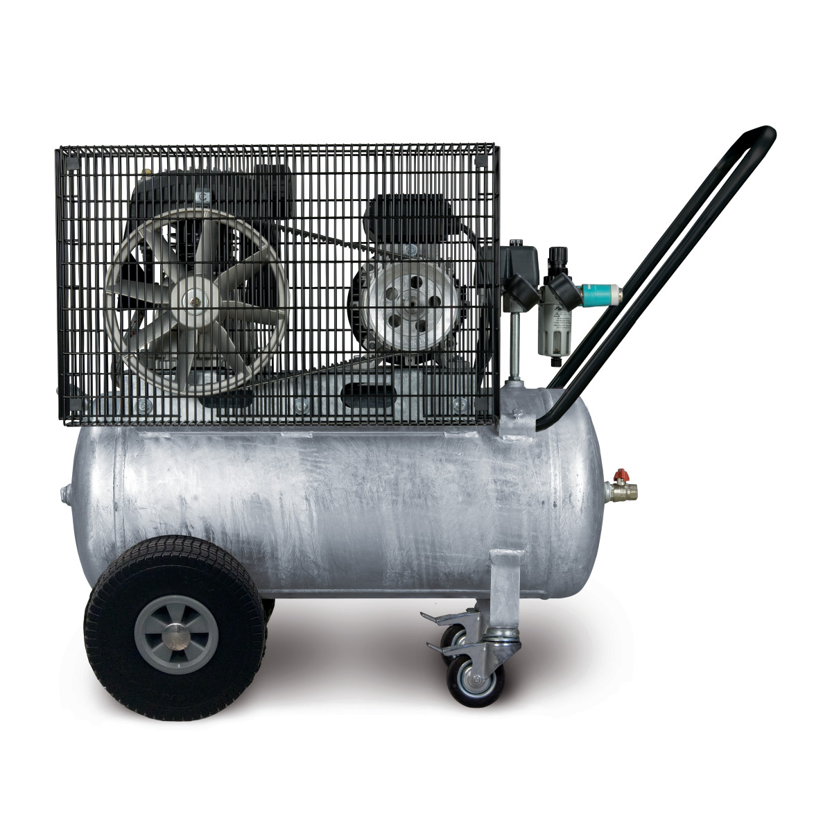- Druckluftbehälter: Innen und außen feuerverzinkt mit fünfzehn Jahre Garantie gegen Durchrostung