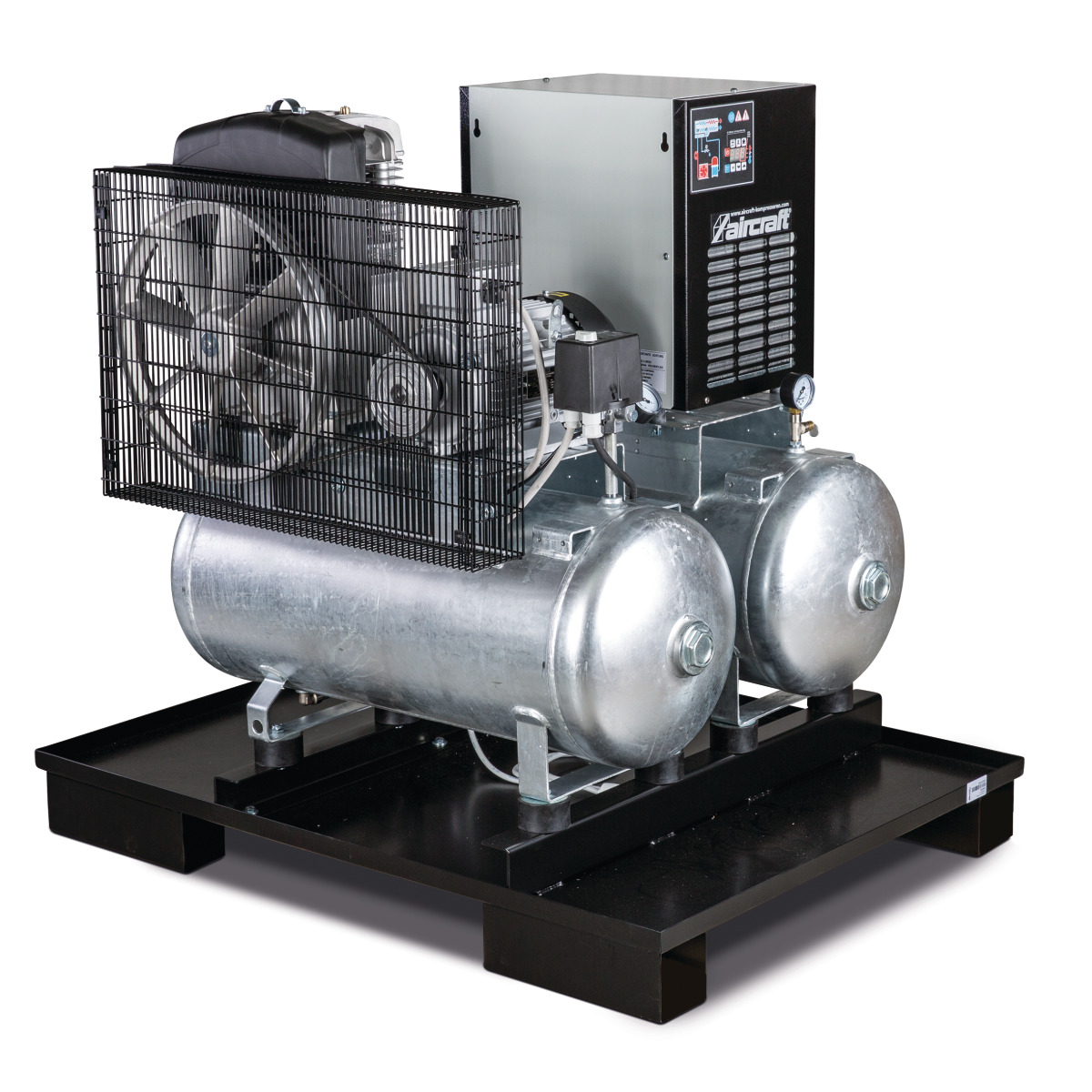 - Druckluftbehälter: Innen und außen feuerverzinkt mit fünfzehn Jahren Garantie gegen Rost