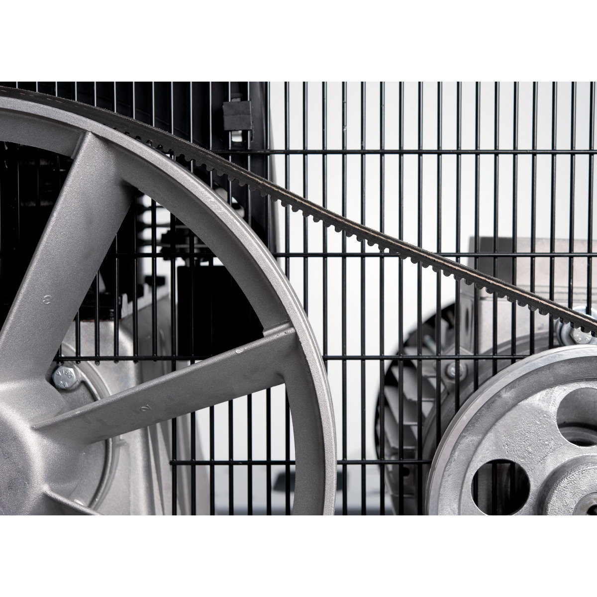 - Der gezahnte Antriebsriemen erleichtert den Anlauf, verbessert die Laufruhe sowie die Kraftübertragung und reduziert die Leistungsaufnahme um bis zu 30%