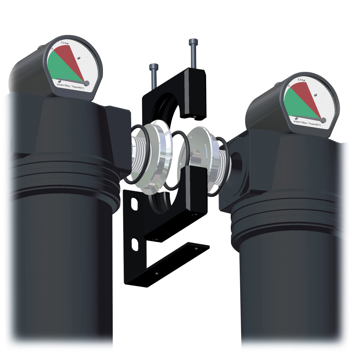 - Um die geforderte Qualität der Druckluft zu erreichen, müssen Filter, die stufenweise alle Arten von festen und flüssigen Verunreinigungen aus der Druckluft entfernen, in der Druckluftleitung installiert werden