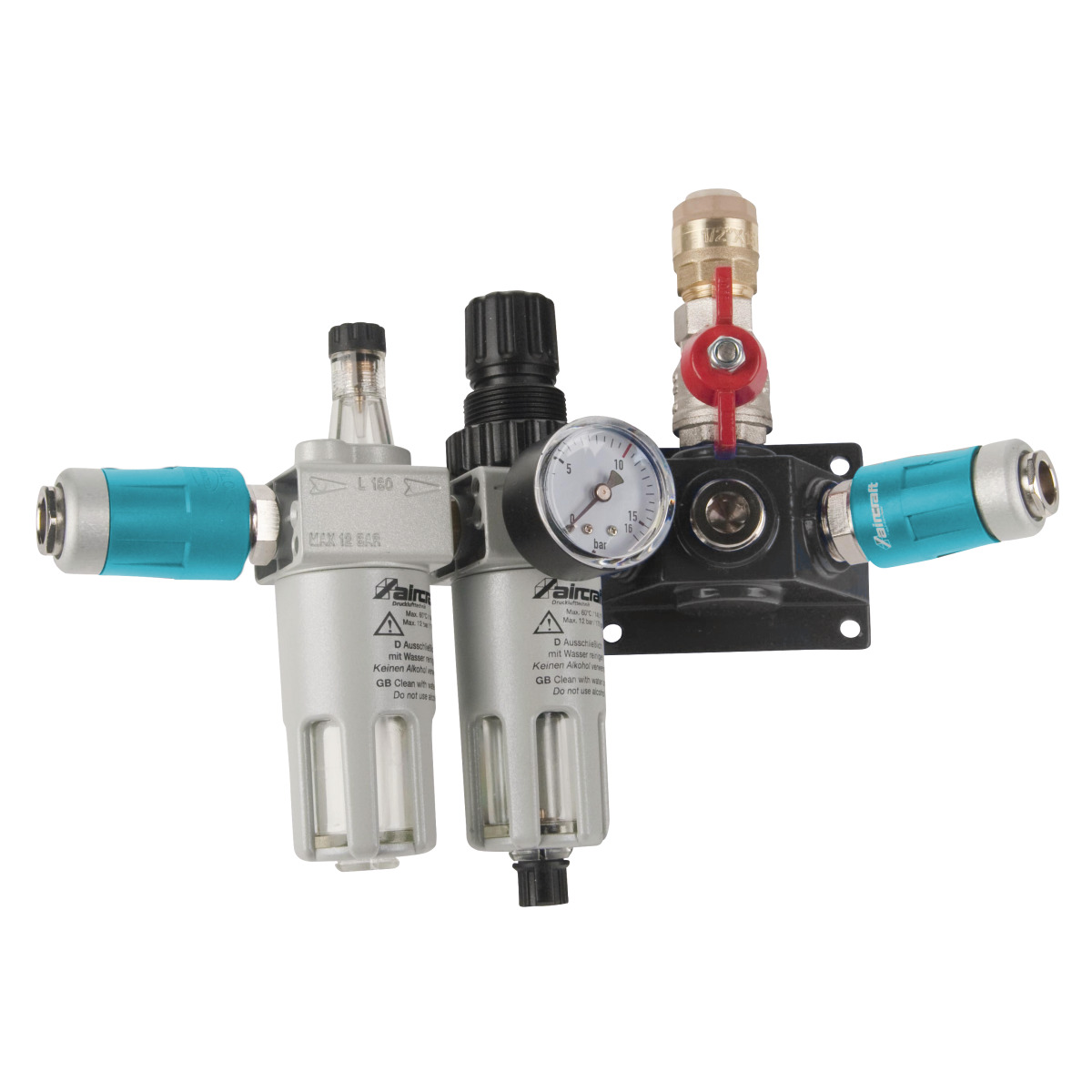 Aircraft EVD15 2xSK-AH-FDR-NO Endverteilerdose mit zwei Sicherheitskupplungen, Absperrhahn, Filterdruckregler und Nebelöler