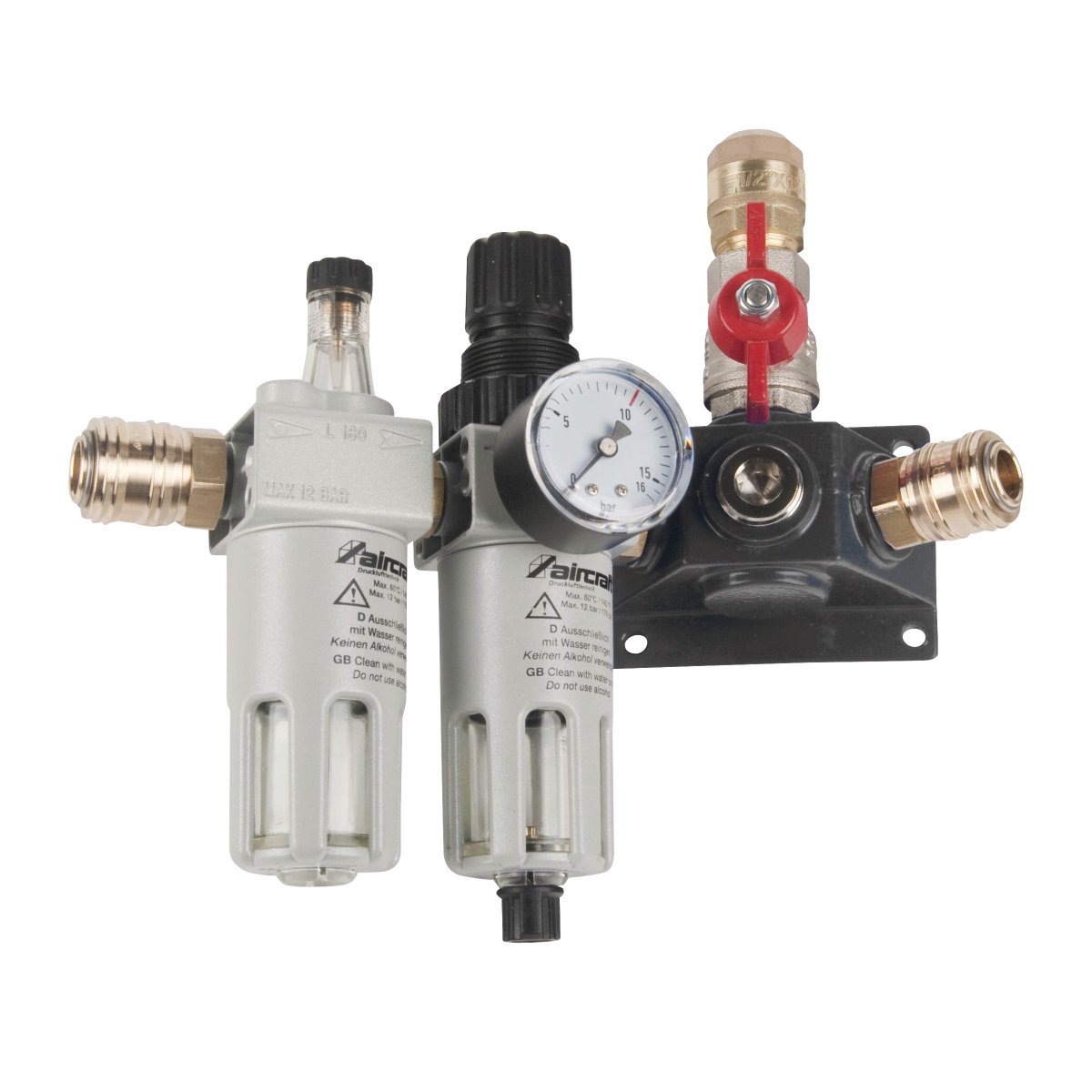 Aircraft EVD22 2xEK-AH-FDR-NO Endverteilerdose mit zwei Einhandkupplungen, Absperrhahn und Filterdruckregler und Nebelöler