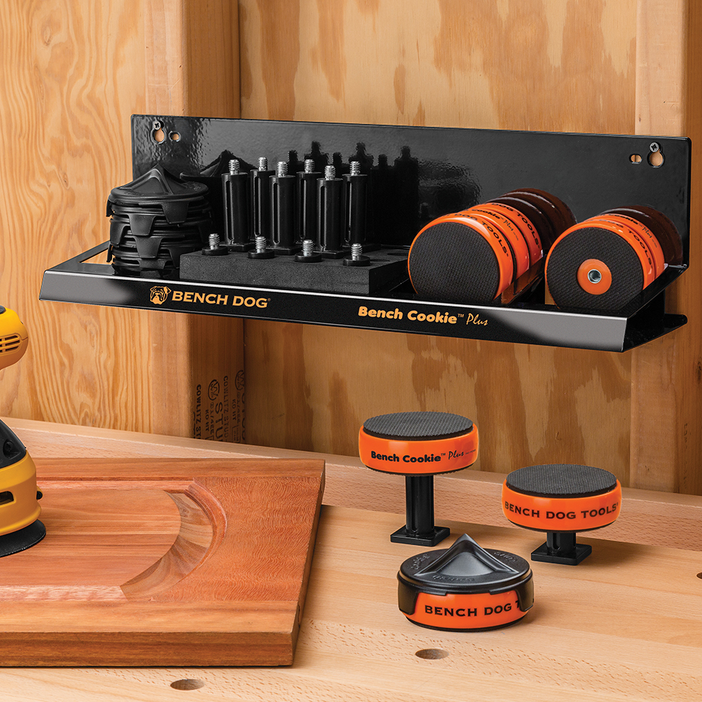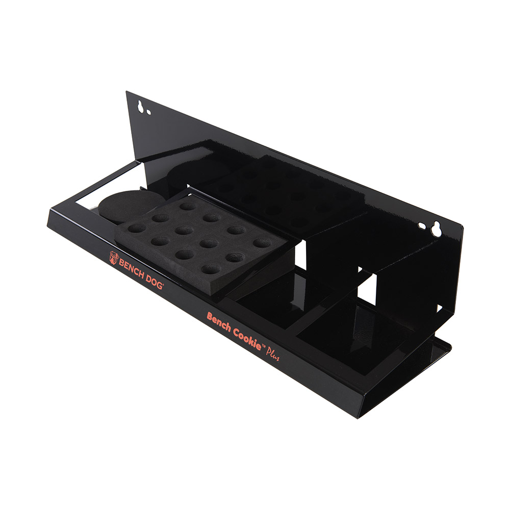 Praktische Halterung zur Aufbewahrung von Cookie Plus Anti-Rutsch-Pads und Zubehör. Die Halterung fasst: 8 Cookie Plus Anti-Rutsch-Pads, 12 Sockel und Kegelaufsätze. Stellen Sie die Halterung einfach auf Ihre Werkbank oder befestigen Sie sie an der Wand und haben Sie die Pads jederzeit griffbereit.