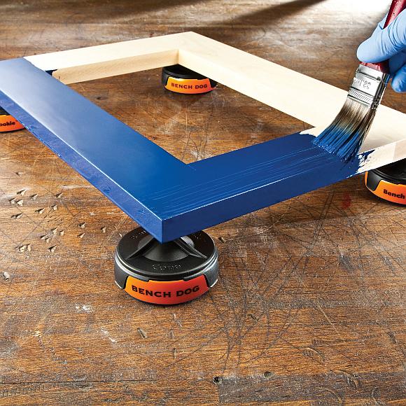 Ideal bei der Endbearbeitung von Werkstücken. Hebt das Werkstück von der Werkbank ab, minimiert die Auflagefläche und sorgt über die gesamte Arbeitsdauer für Stabilität. So lassen sich beide Seiten des Werkstücks ohne Verrutschen fertigstellen und die Auflageflächen der Cookie Plus werden vor Farbe und Ähnlichem geschützt. Speziell zur Verwendung mit den Cookie Plus Werkstückauflagen konzipiert.