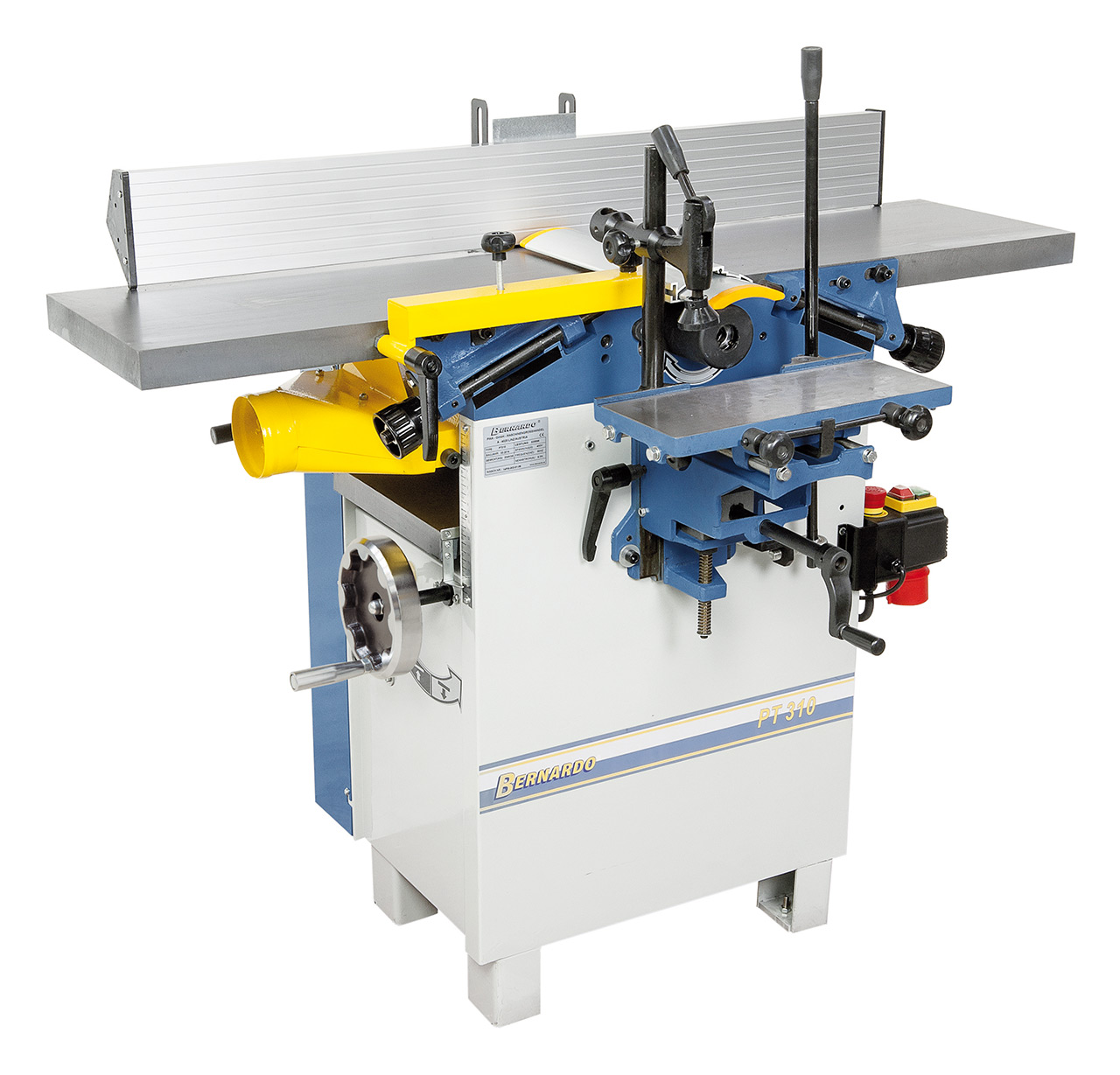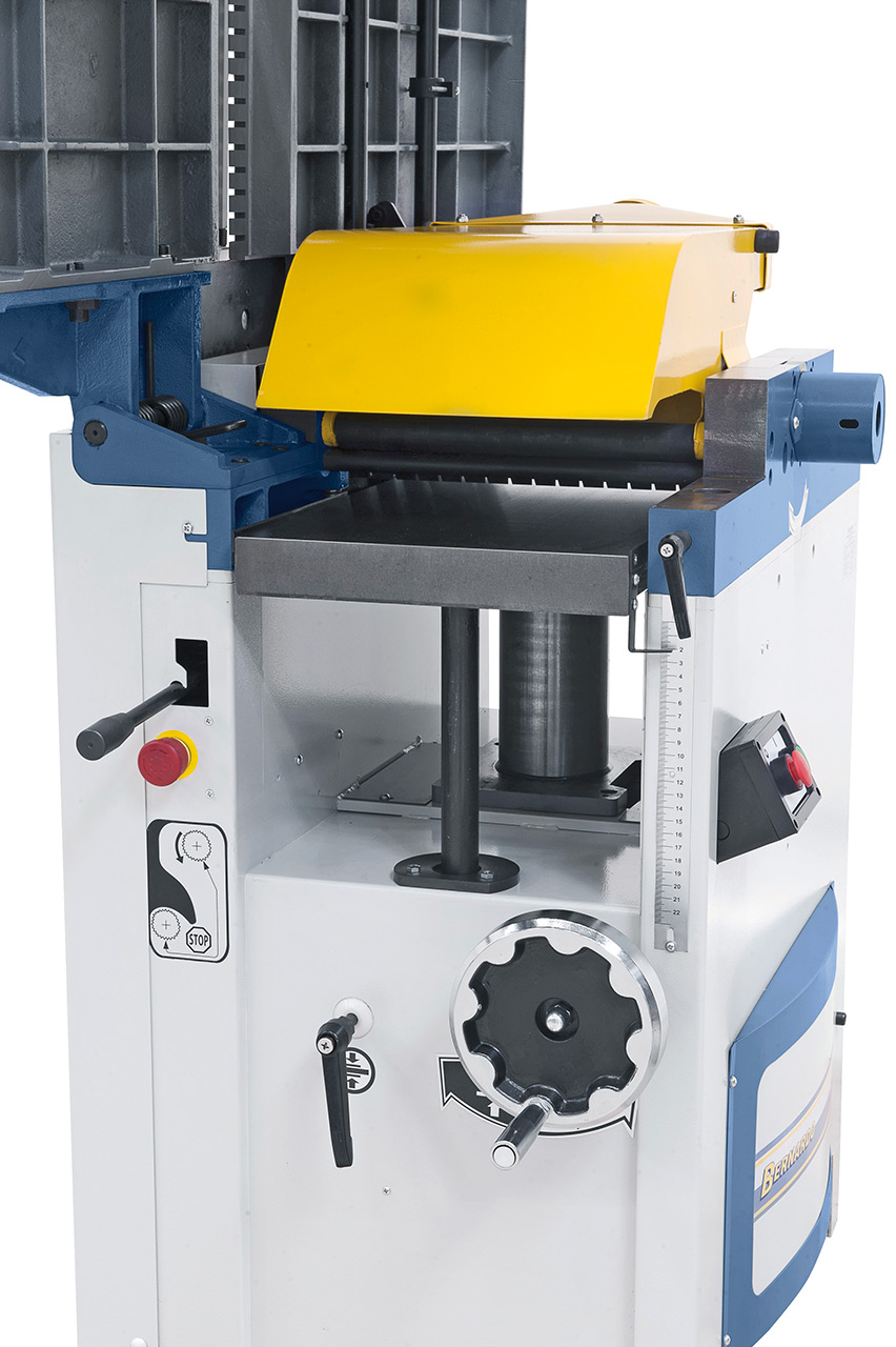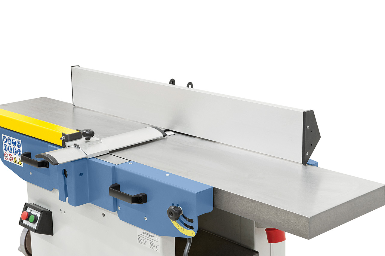 - Zahlreiche Schutzvorrichtungen: Ein-Aus-Schalter mit Unterspannungsauslöser, Hobelwellenschutz nach CE, Endschalter gegen unbeabsichtigtes Einschalten,…