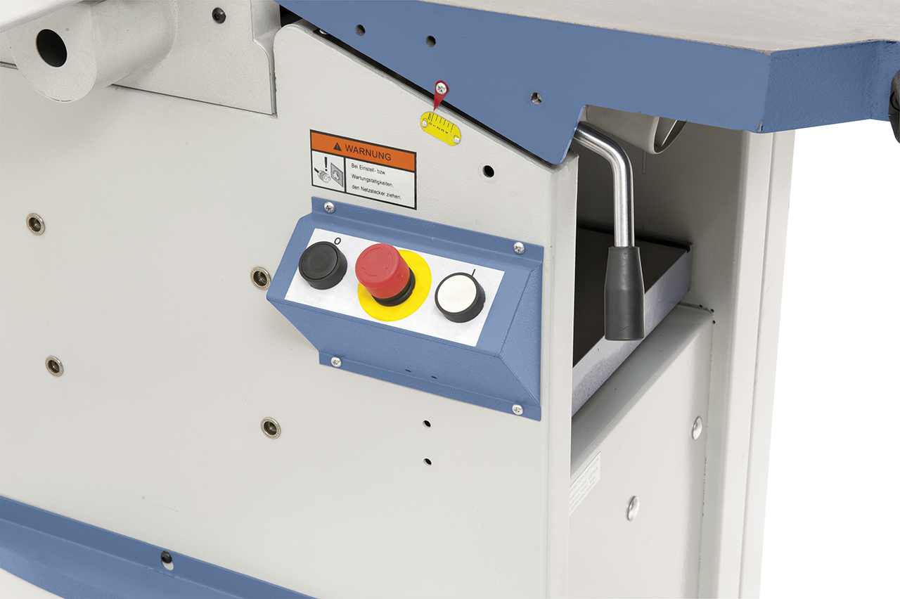 - Seitlich geführter Abrichtanschlag, dadurch kann die Maschine direkt an die Wand gestellt werden