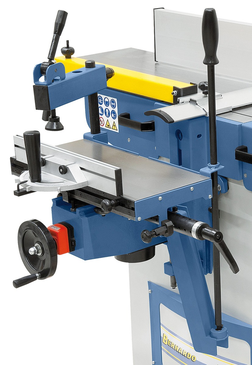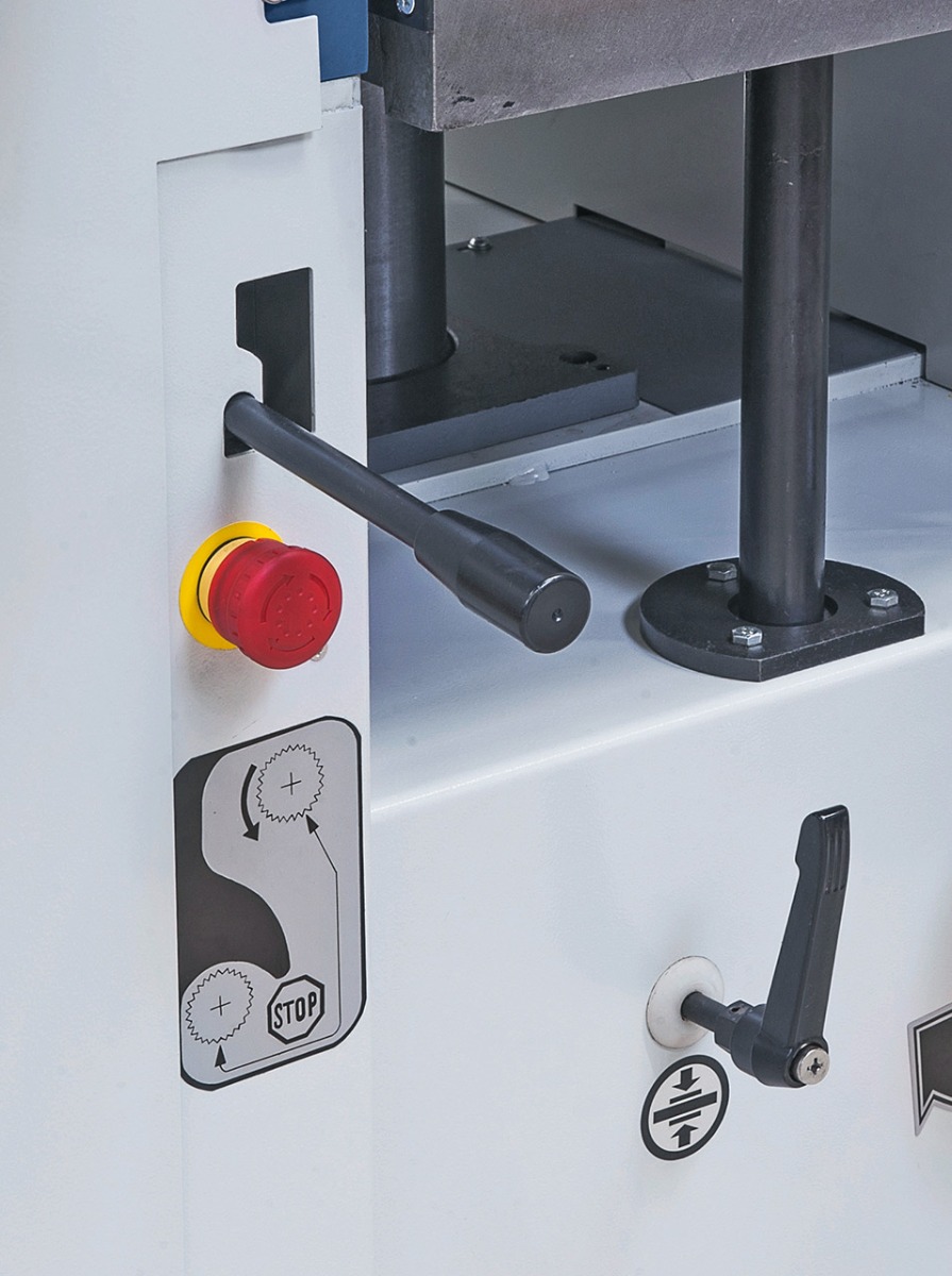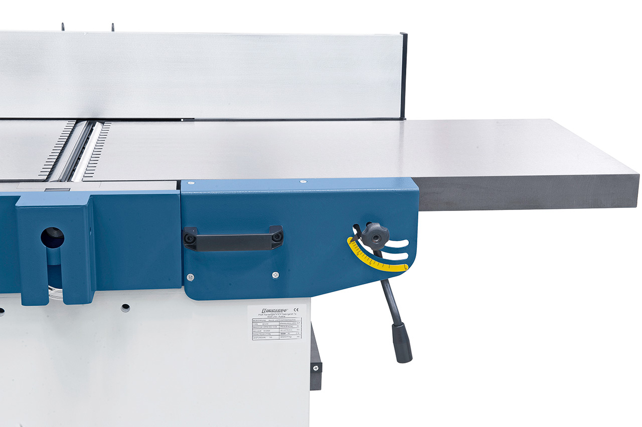 • Zahlreiche Schutzvorrichtungen: Ein-Aus-Schalter mit Unterspannungsauslöser, Hobelwellenschutz nach CE, Endschalter gegen unbeabsichtigtes Einschalten,…