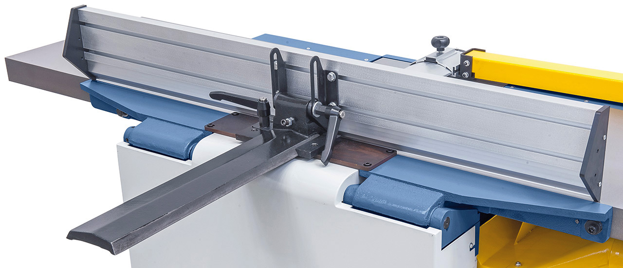 • Harteloxierter Aluminium-Abrichtanschlag, von 90° auf 45° schwenkbar