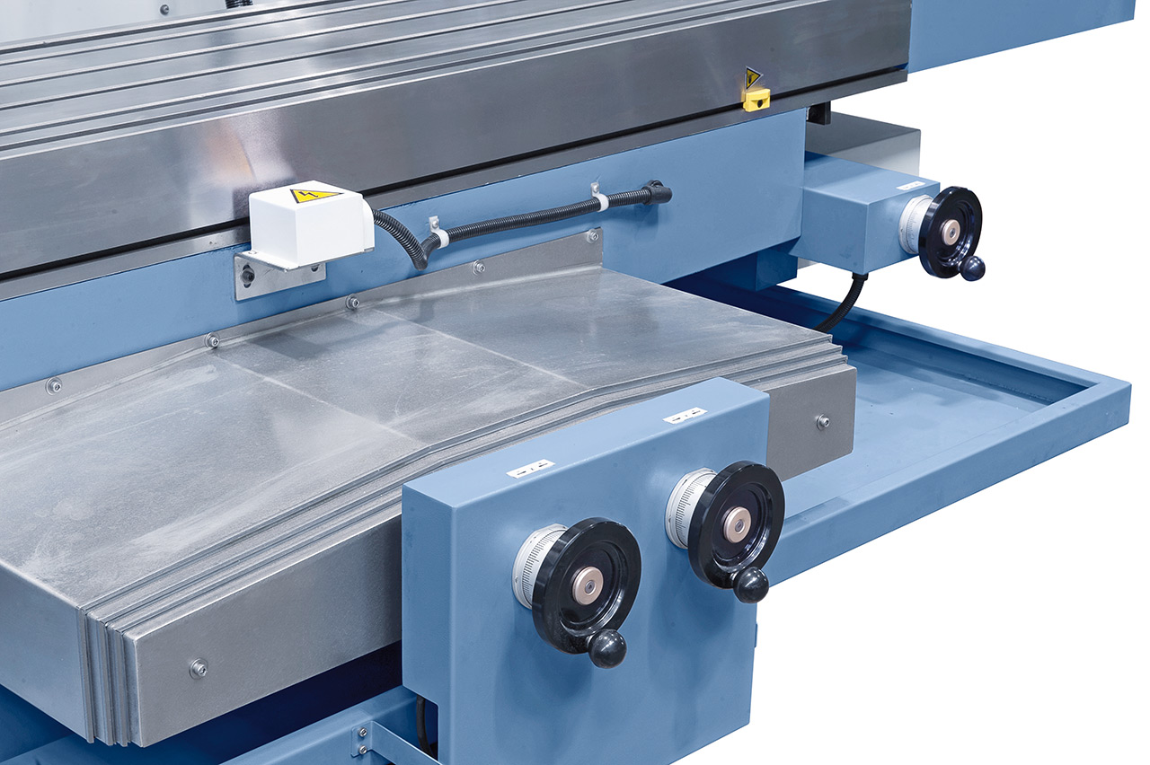 - Präzisionsgeschliffener Arbeitstisch, optimal geführt auf dem breiten Sattel