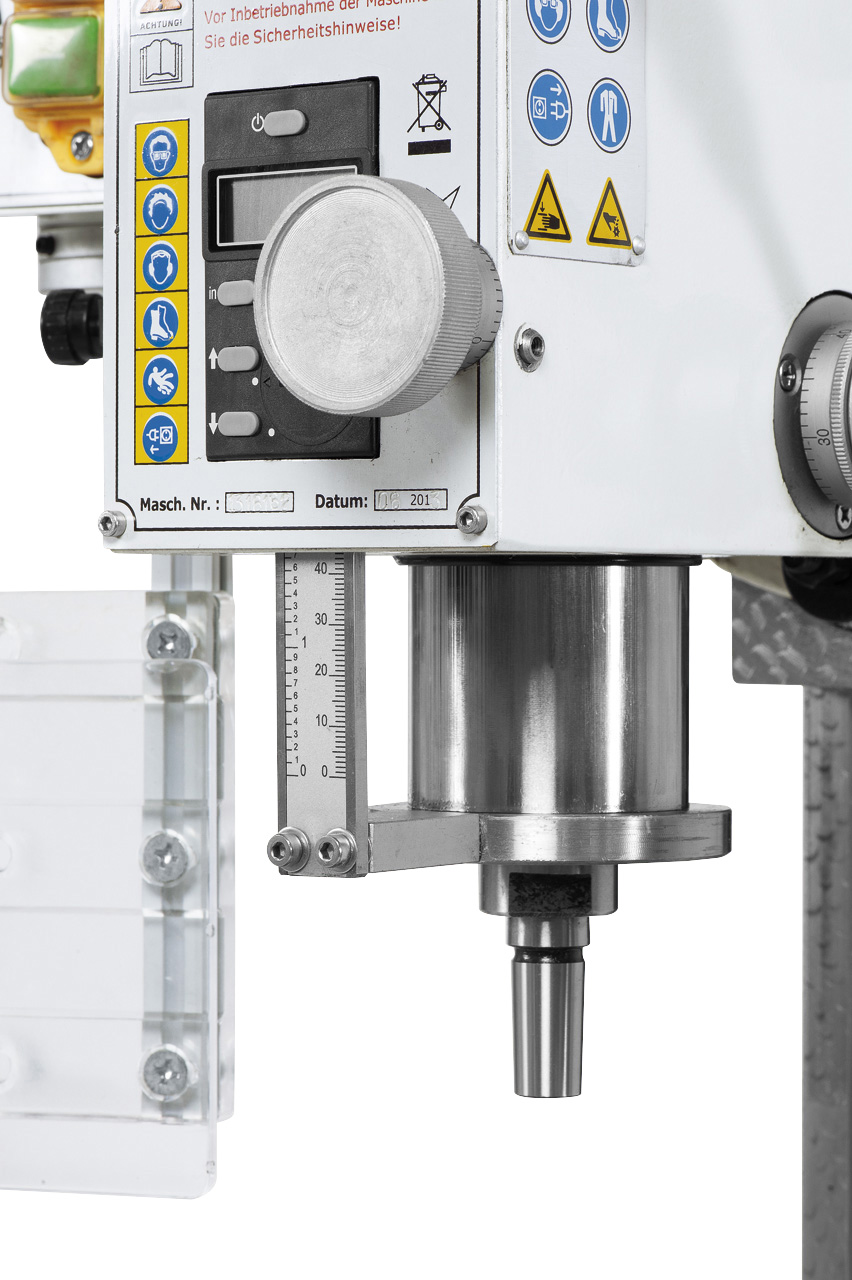 Die kleine und kompakte Bohr- und Fräsmaschine KF 16 L Vario ist serienmäßig mit einer digitalen Drehzahl- und Pinolenhubanzeige ausgestattet. Ihren Einsatzbereich findet dieses Modell beim anspruchsvollen Feinmechaniker und Modellbauer.