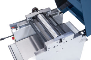 • Kettenantrieb für sicheren und gleichmäßigen Werkstückvorschub