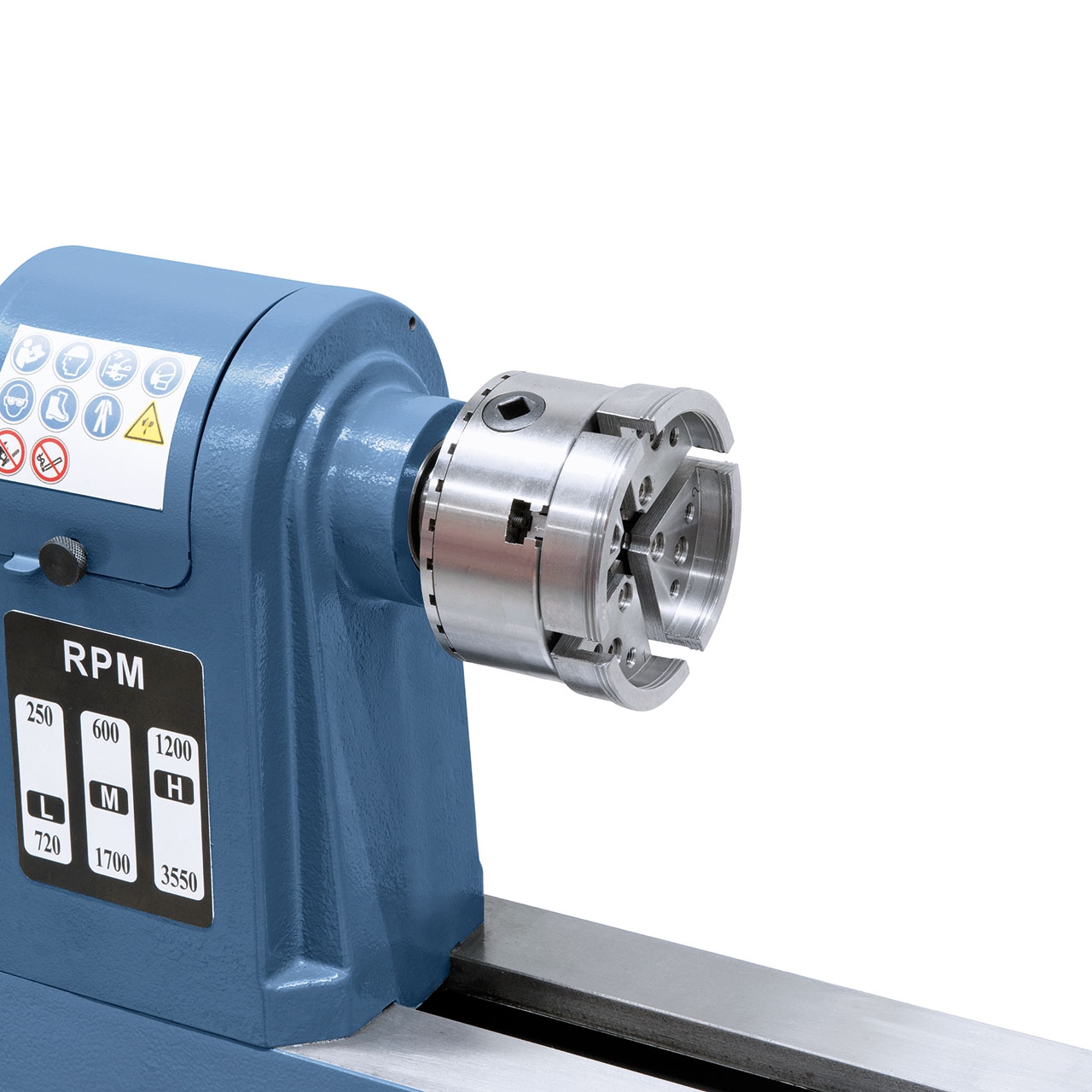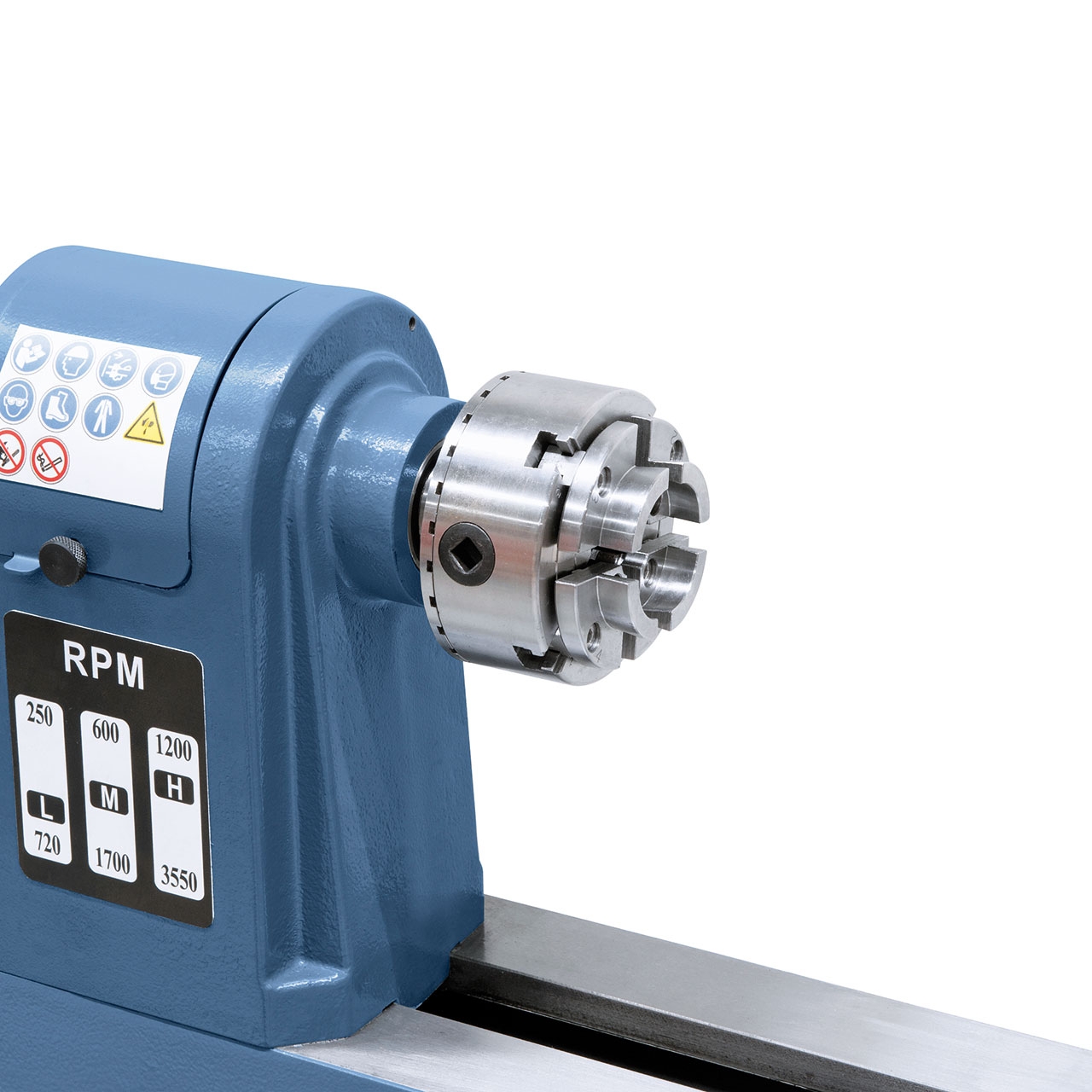 - Maschinenbett, Reitstock und Spindelstock aus stabilem Grauguss für vibrationsfreies Arbeiten
