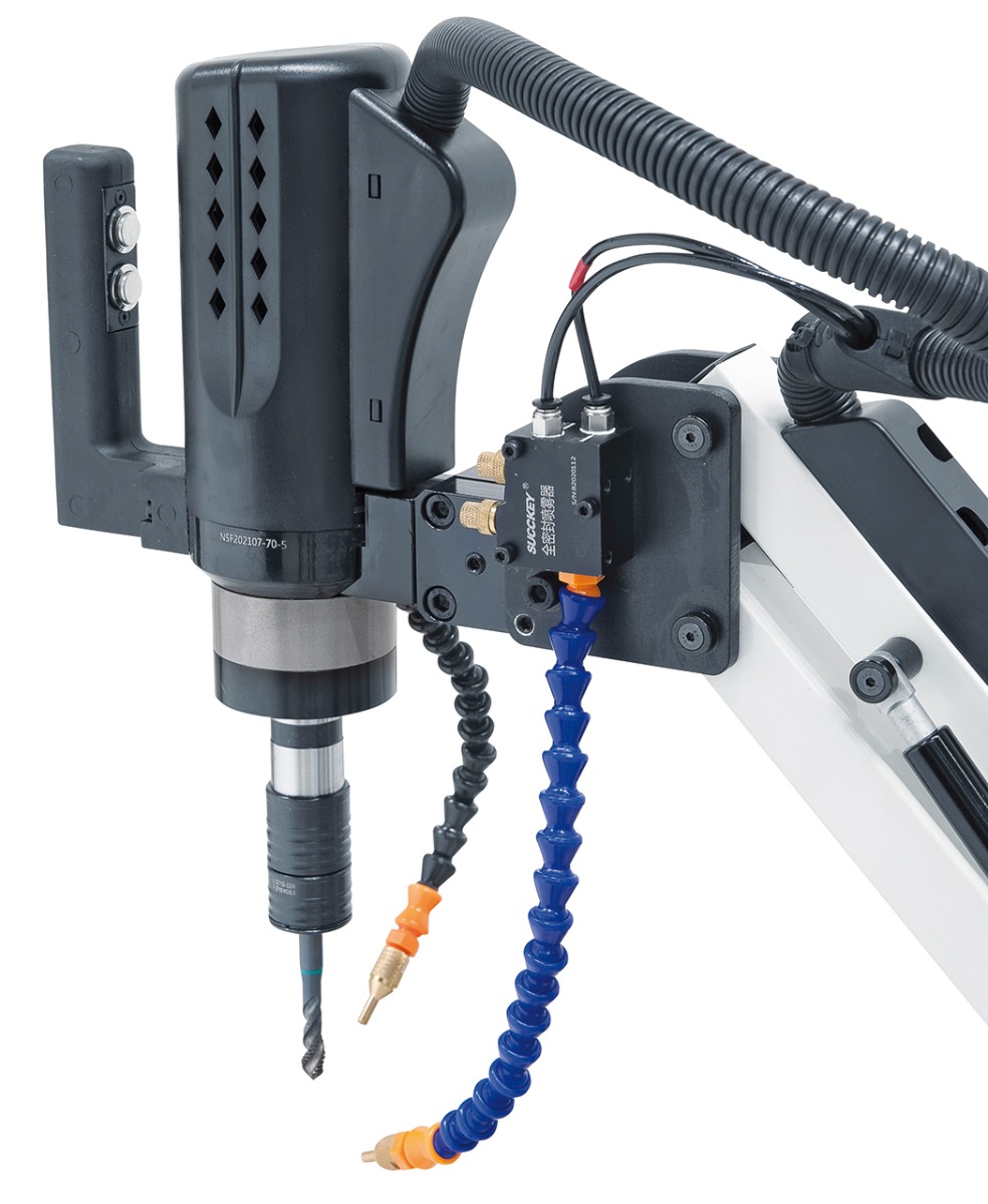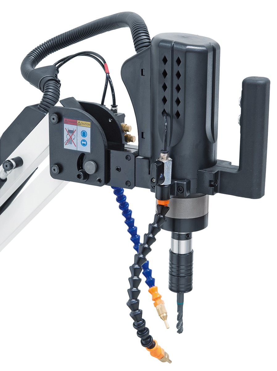 - Inklusive Schwenkarm mit großem Radius für einfaches Positionieren des Gewindebohrers am Werkstück