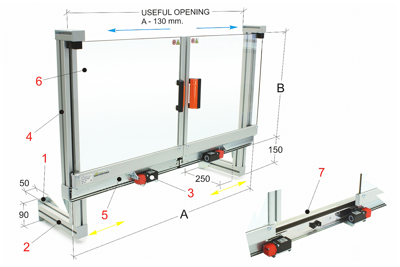 • Wird an der Vorderseite der Maschine montiert. Ausgestattet mit zwei Schiebetüren auf Kugelführungen, welche aus dick-wandigem Kunststoffmaterial bestehen