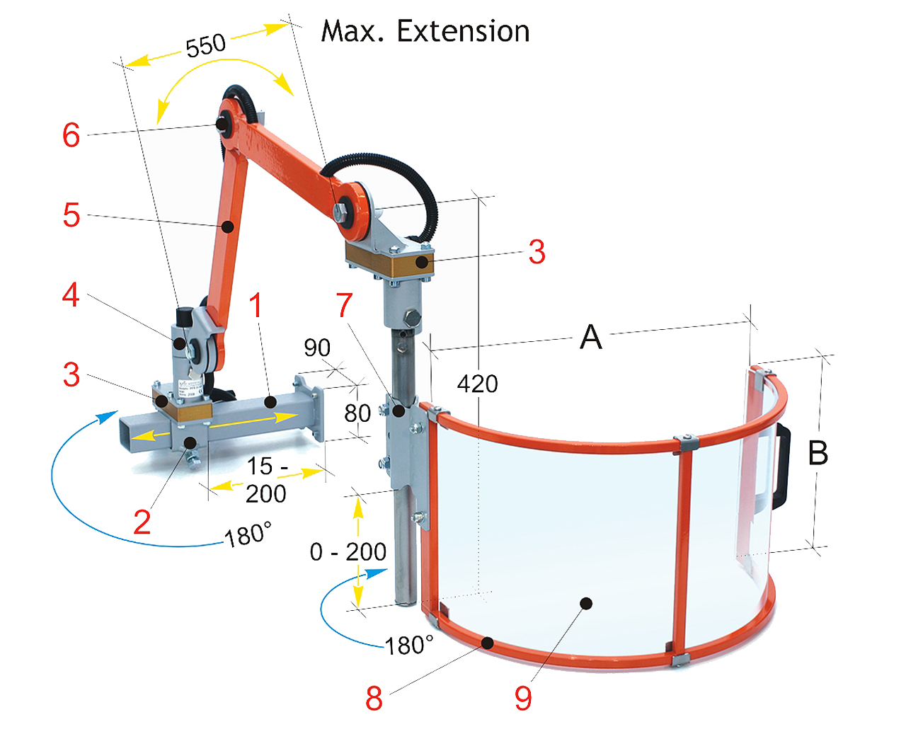 • Klassische Universalschutzeinrichtung mit Gelenkarmen