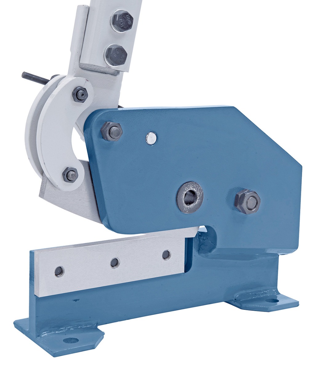 - Maschinenkörper aus stabilen Stahlplatten, mit Bohrungen zur Befestigung auf der Werkbank