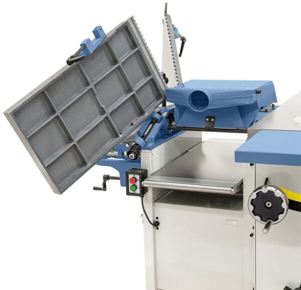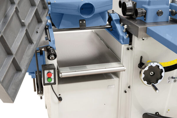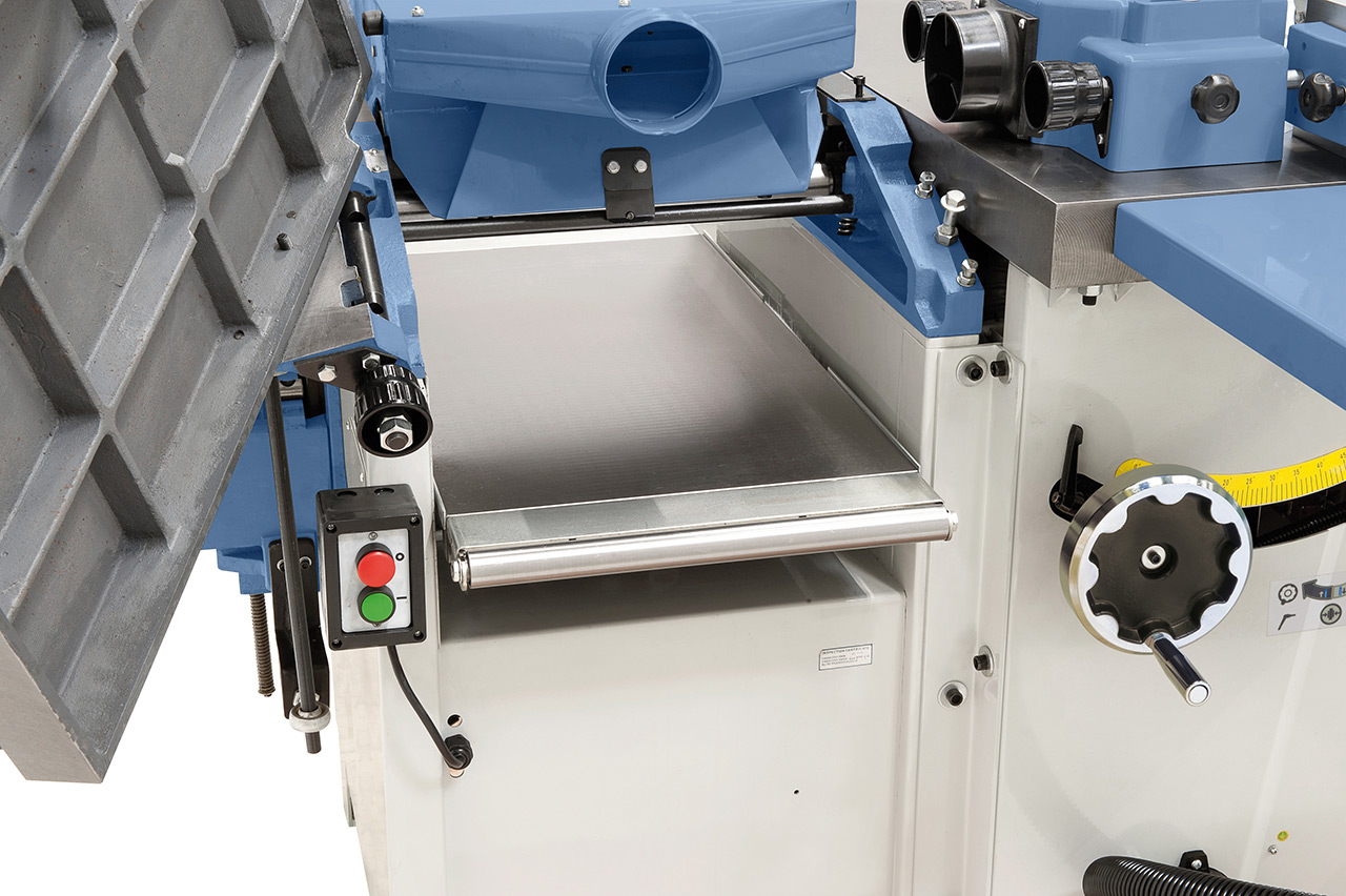 Das Holzbearbeitungszentrum CF 410 F – 2600 bietet dem professionellen Anwender ein Höchstmaß an Einsatzmöglichkeiten und Leistung. Durch die Kombination aus Abricht-, Dickenhobel-, Kreissäge-, Fräs- und Langlochbohrmaschine bietet diese Maschine einen großen Einsatzbereich auf engstem Raum.