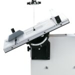 - Leicht verschiebbarer Längsanschlag aus Aluminium mit Schnellklemmsystem und integrierter Lupe