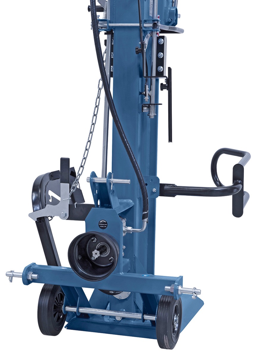 - Serienmäßig mit Stammheber zum Aufrichten großer und schwerer Stämme und Spaltguthalterung