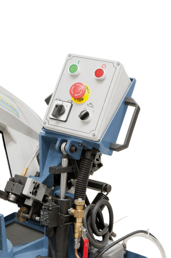 Die kostengünstige Horizontalbandsäge MCB 210 eco mit umfangreicher Grundausstattung (Untergestell, Kühlmitteleinrichtung, Sägeband, …) ist die ideale Maschine für den kostenbewussten Anwender. Der Sägebügel ist bis 60° schwenkbar, dadurch ermöglicht dieses Modell ein platzsparendes Arbeiten bei langen Werkstücken.