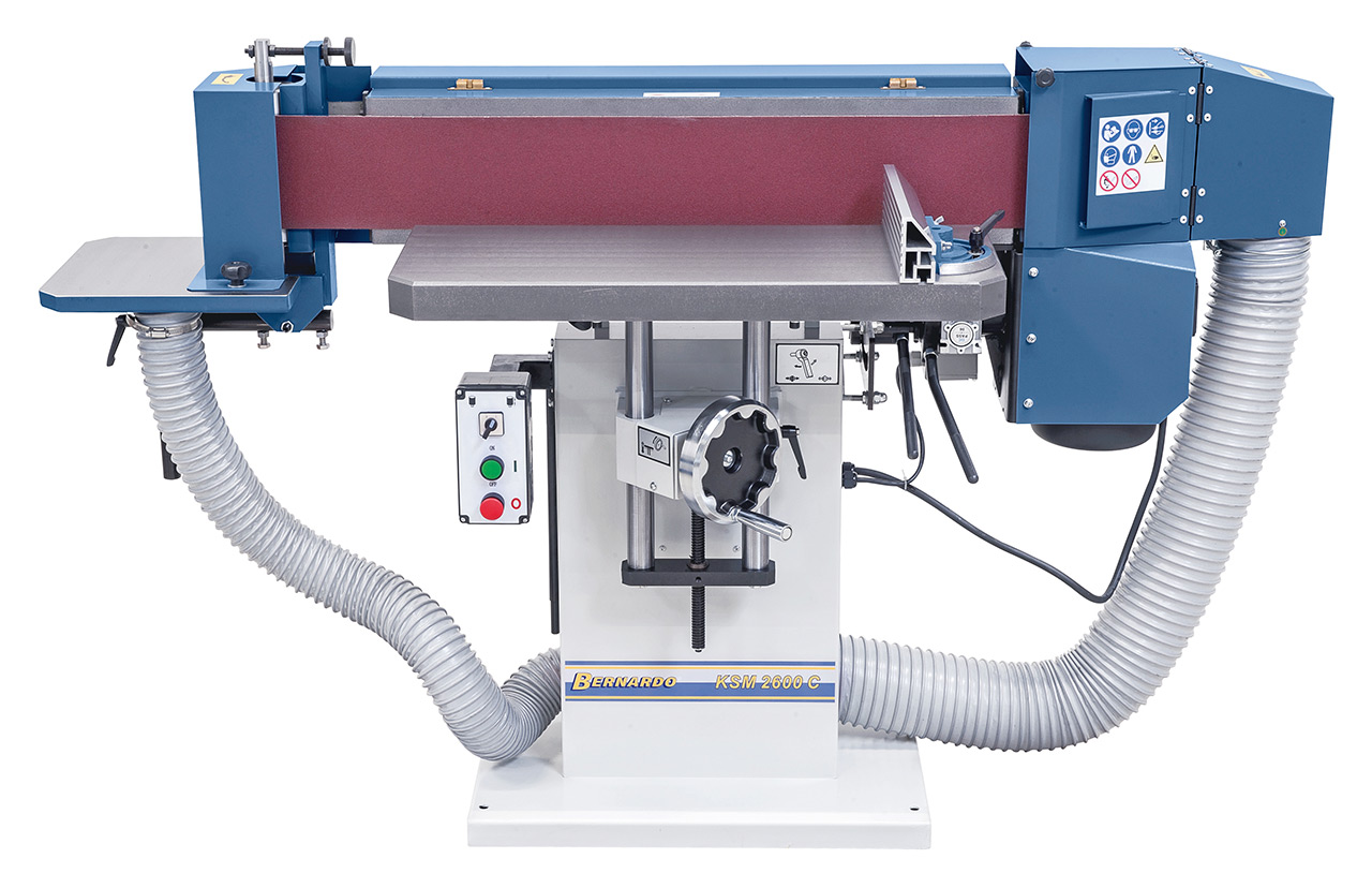 Die Kantenschleifmaschine KSM 2600 C ist serienmäßig mit einer Schleifband-Oszillation mit separatem Getriebemotor ausgestattet. Das von 90° bis 45° schnellverstellbare Schleifaggregat ermöglicht das Schleifen von geraden und schrägen Kanten.