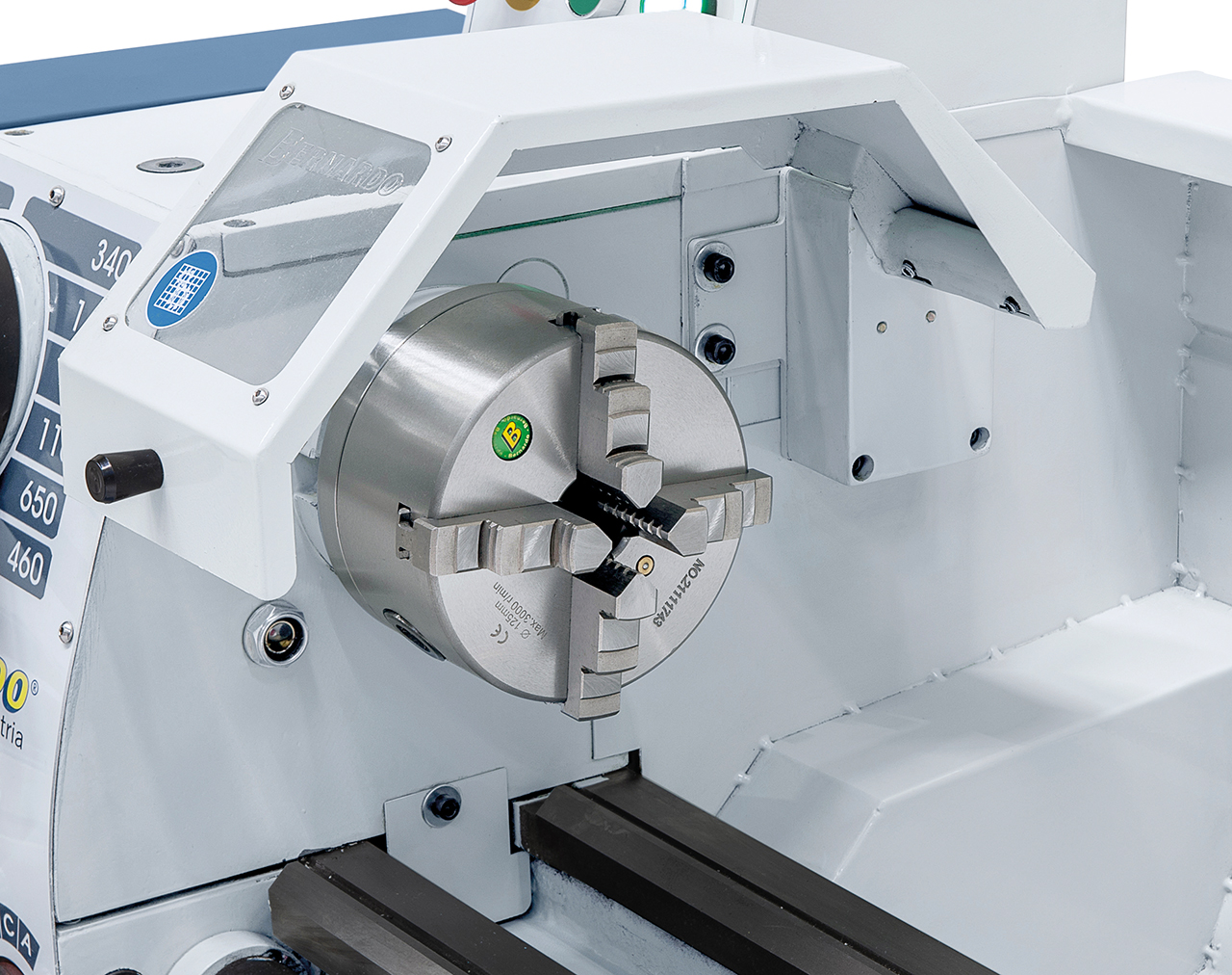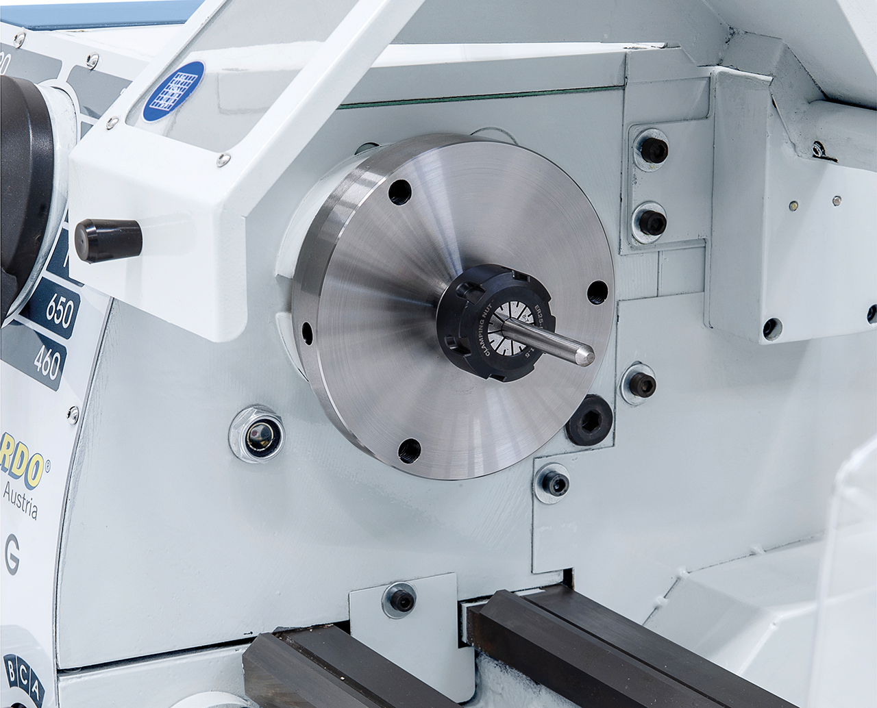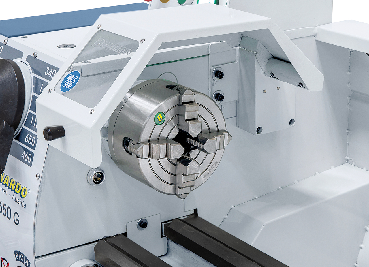 Die Drehmaschine Profi 650 G ist serienmäßig mit einer Leit- und Zugspindel zum Gewindeschneiden bzw. für den automatischen Längs- und Planvorschub ausgestattet.  Durch das 12-Stufen-Schaltgetriebe wird ein schnelles Einstellen der Drehzahlen ermöglicht – kein Keilriemenwechsel notwendig. Durch ihre kompakte Bauweise und das hohe Eigengewicht bietet diese Maschine eine hohe Laufruhe und garantiert dadurch präzises Arbeiten.