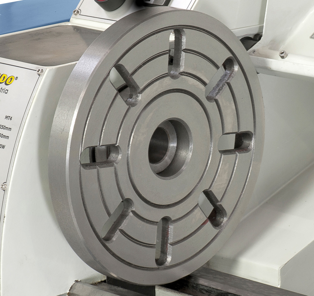Die präzise Leitspindeldrehmaschine Profi 550 WQ wird nach den strengen Vorgaben des DIN-Standards gefertigt. Die Besonderheit dieses Modells ist der große Längsvorschubbereich mit 6 frei wählbaren Vorschüben sowie der serienmäßige Planvorschub.