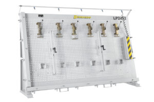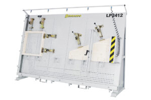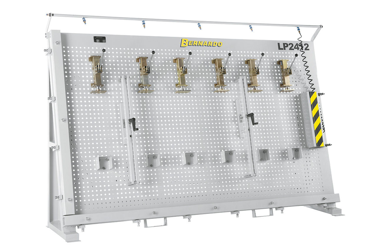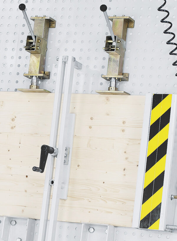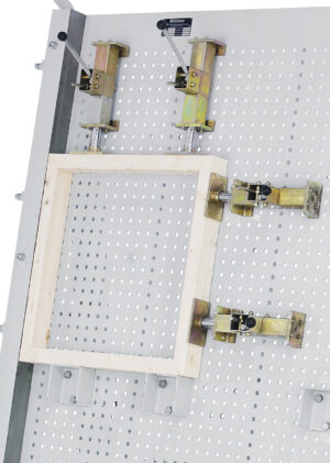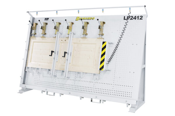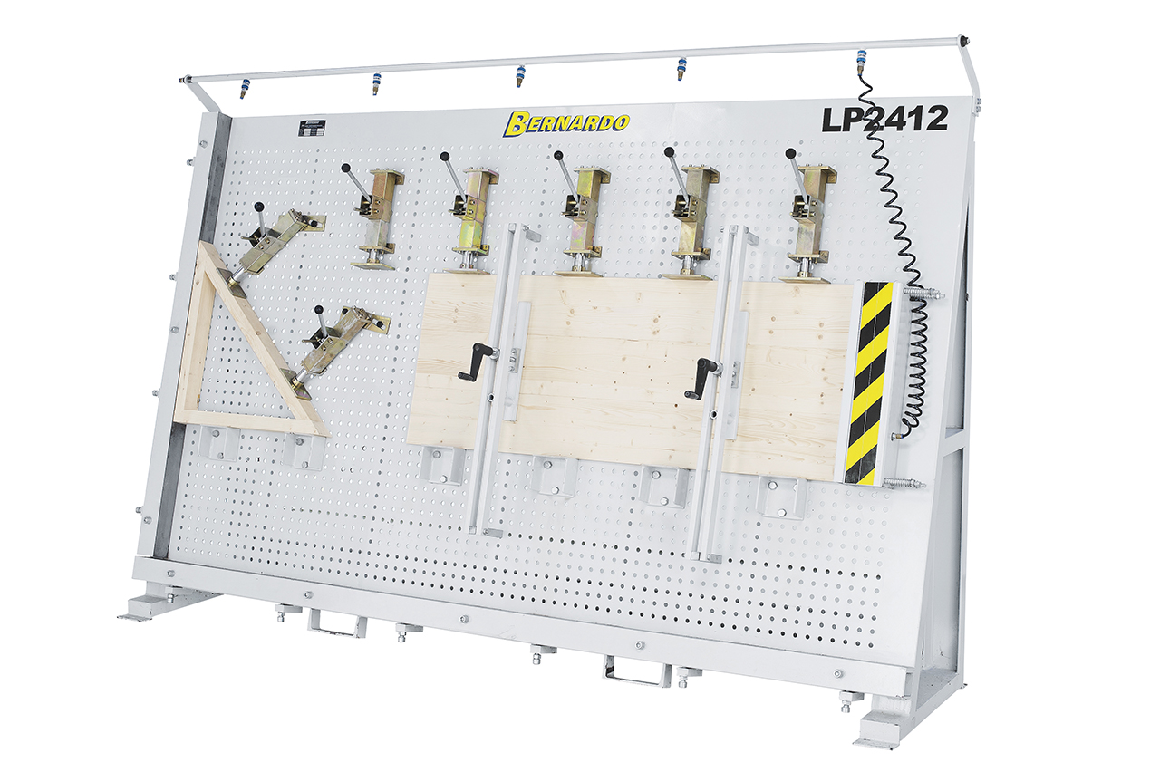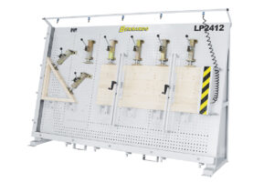 Die Lochplattenpresse LP 2412 eignet sich zur Herstellung von Rahmen, Türen, Kassetten, Schubladen usw. Durch die optional erhältlichen schwenkbaren Handhydraulik-Zylinder können auch Spitzfenster und Sonderformen wie etwa Polygone usw. rationell verleimt werden.