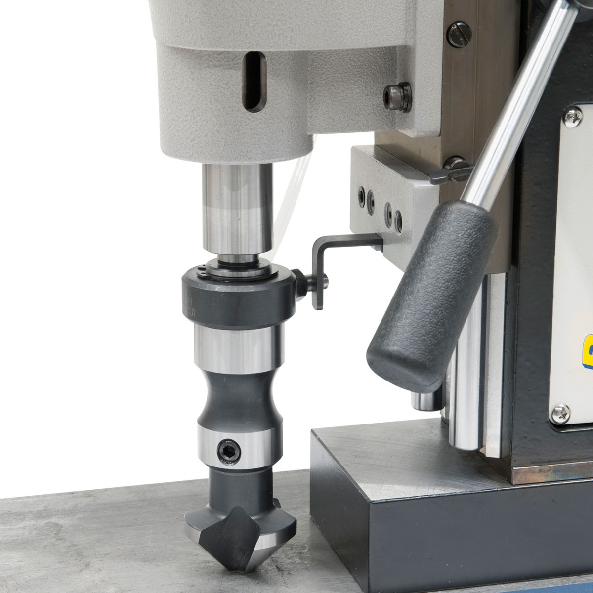 - Serienmäßig mit MK2-Konus zur Aufnahme diverser Werkzeuge (Spiralbohrer, Senker, Reibahlen, Gewindeschneidfutter, Lochsäge, ?)
