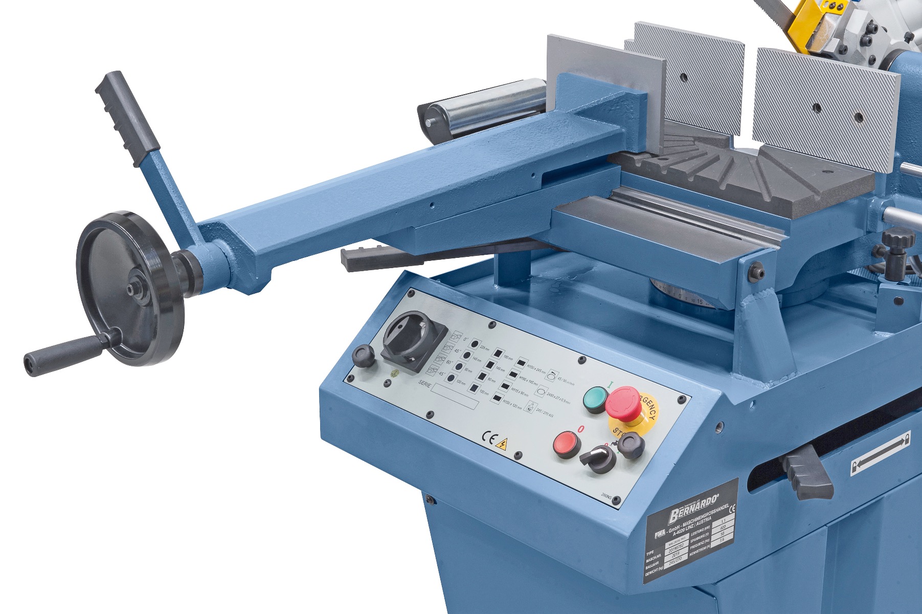 Das Modell MBS 280 DG PRO ist eine präzise Horizontalbandsäge für den universellen Einsatz. Die Merkmale dieser Maschine sind der schwenkbare Sägebügel für Doppelgehrungsschnitte von -45° bis +60°, sowie ein Hydraulikzylinder zum feinfühligen Absenken mittels Regelventil.