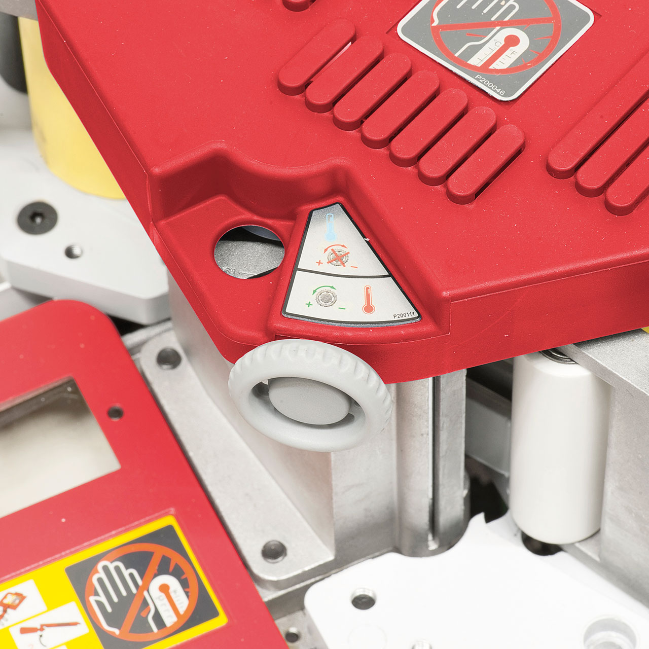 - Kleberauftrag über fein justierbaren Drehknopf einstellbar