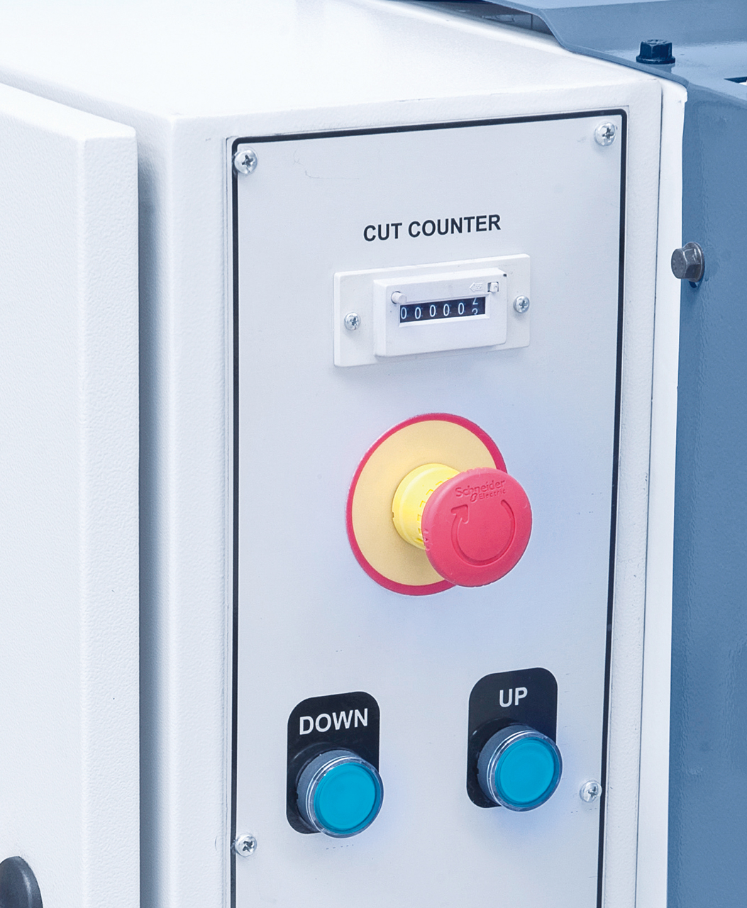 - Zweischneidige Ober- und Untermesser aus Qualitätsstahl garantieren ein sauberes und grafreies Schneiden