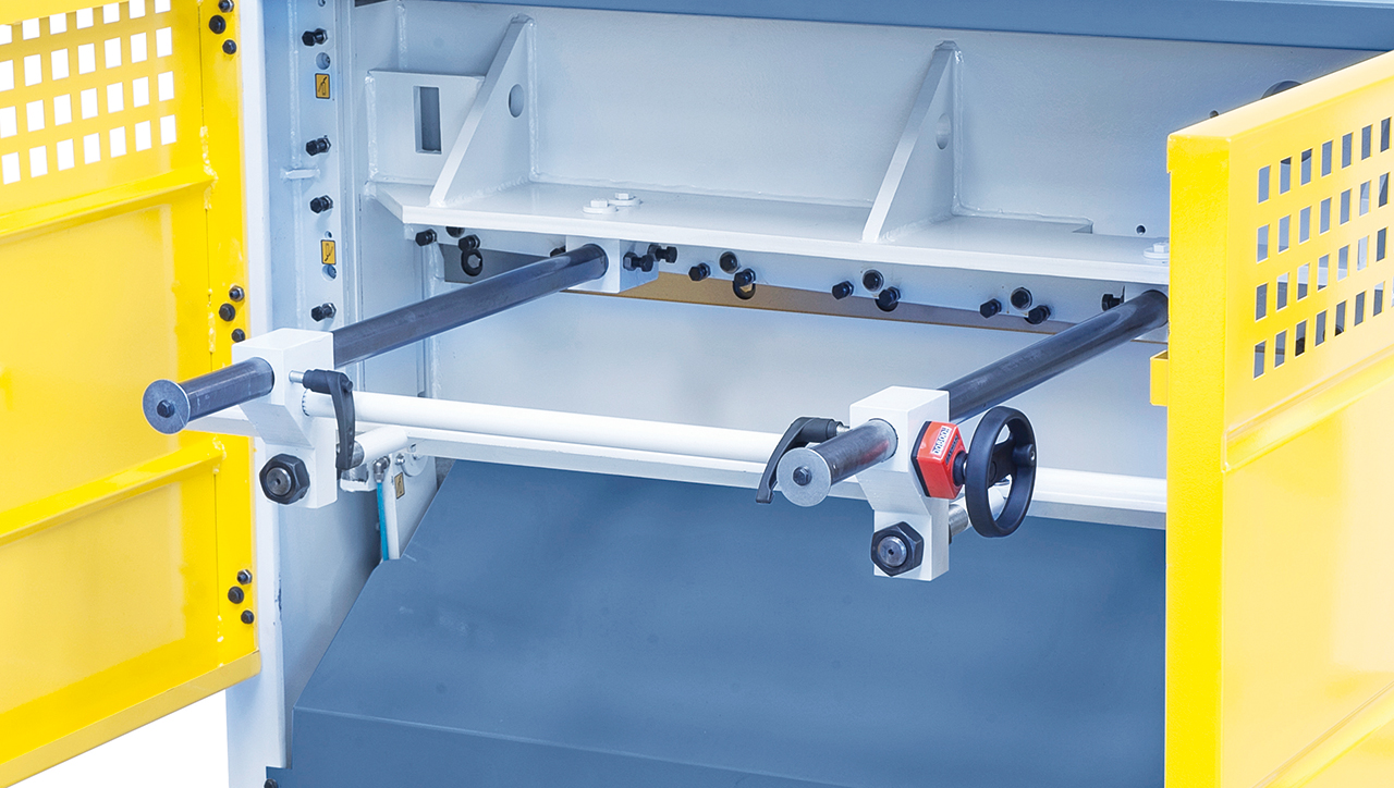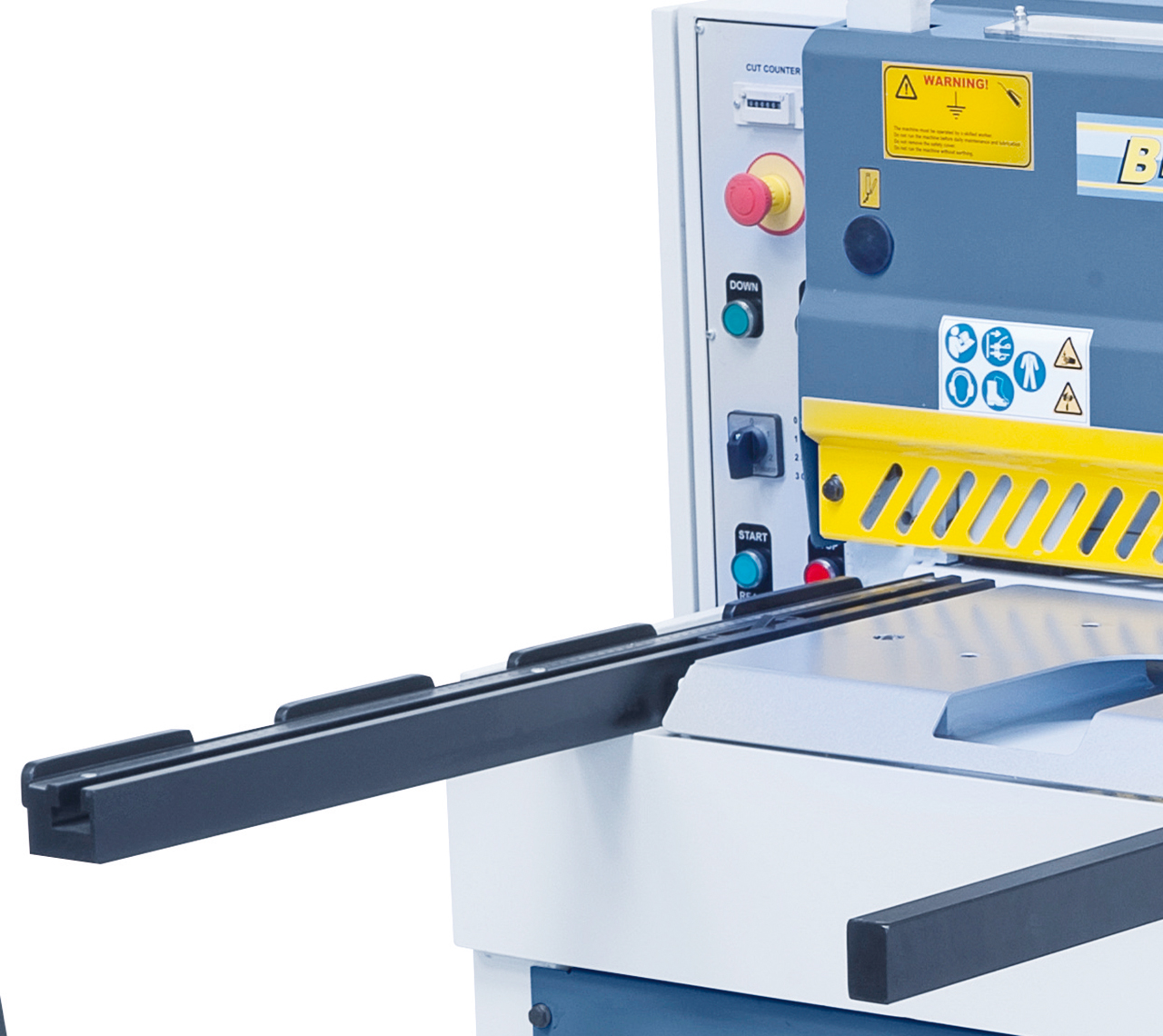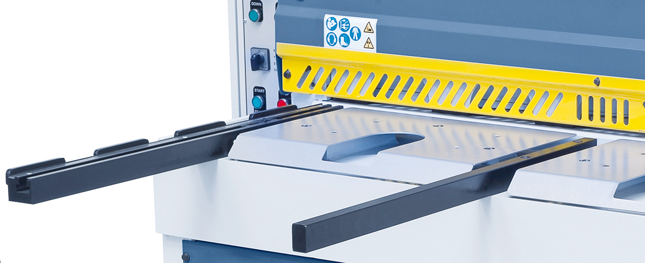 - Scherentisch mit rechtwinkeligem Anschlag auf beiden Seiten