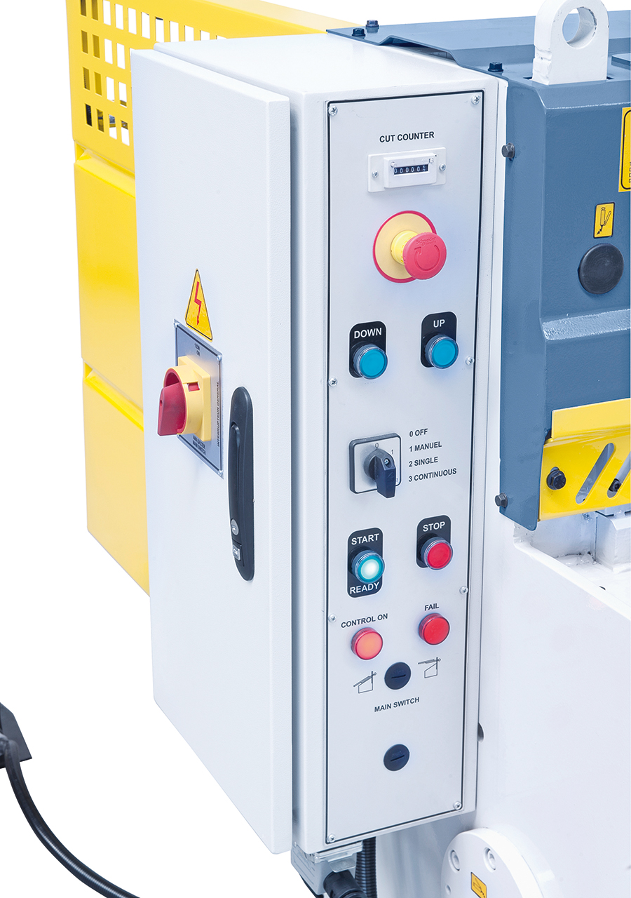 - Schneiden mittels Fußpedal, Hände bleiben frei zum optimalen Positionieren des Bleches