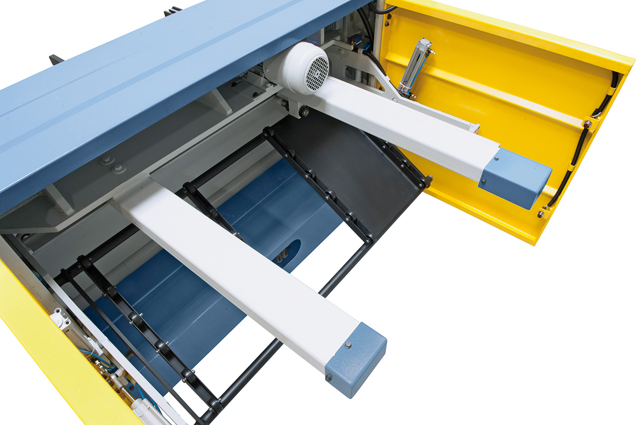 - Blechauswurf erfolgt wahlweise an der Vorder- oder Rückseite der Maschine