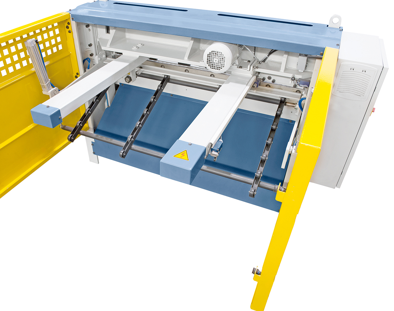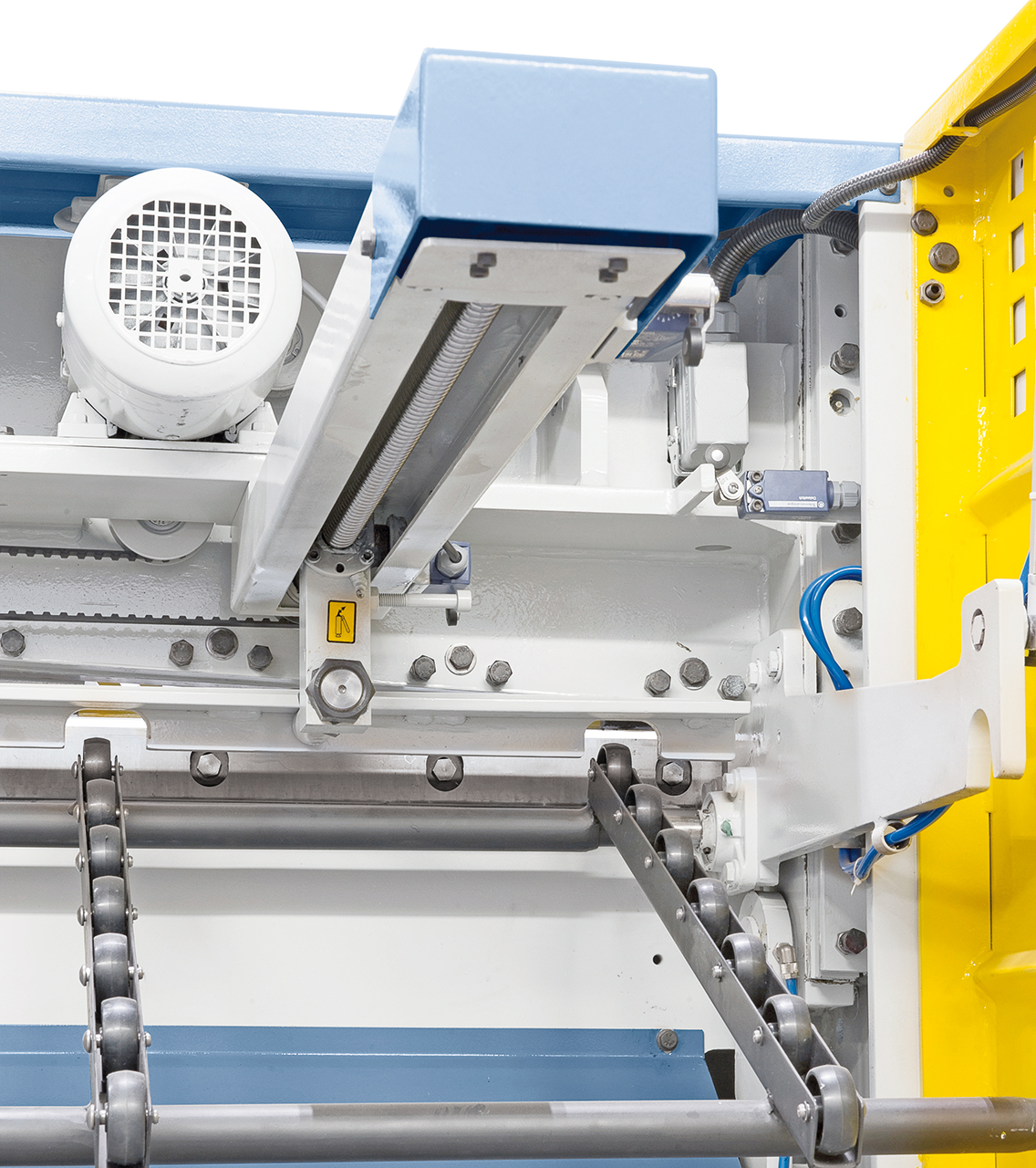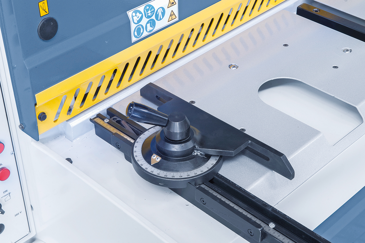 - Motorischer Hinteranschlag, präzises Verfahren über Kugelumlaufspindeln