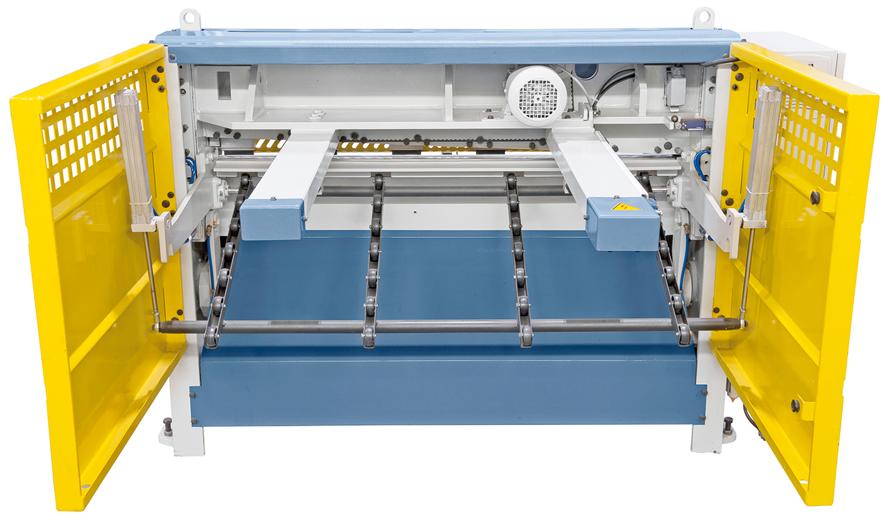 - Hohe Bedienersicherheit durch Schutzabdeckung und Fotozellen an der Rückseite der Maschine