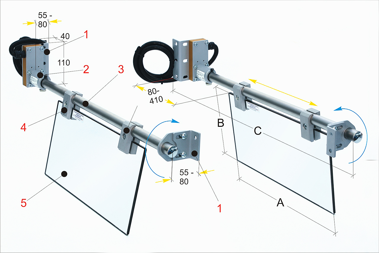 • Horizontal an beiden Seiten des Schlittens montierbar und mit axial bzw. radial einstellbaren Schutzgläsern ausgestattet