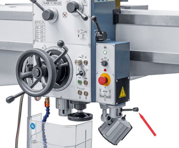 - Drehrichtungsänderung bzw. Ein- und Auskuppeln der Spindel erfolgt mittels Pilotschalter an der Unterseite des Bohrkopfes