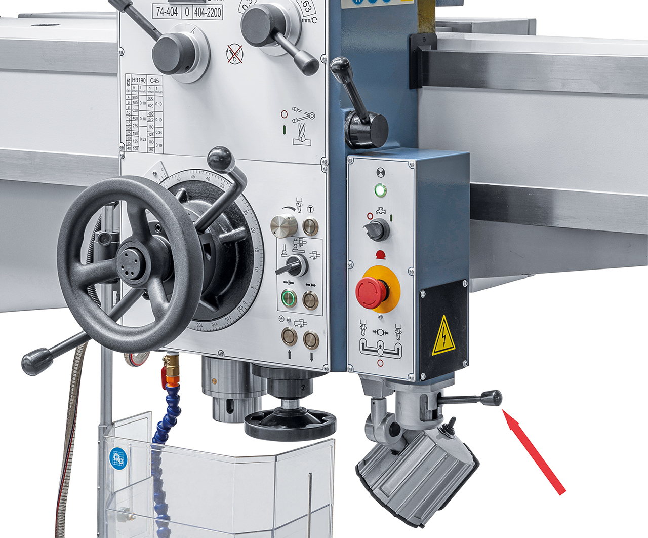 - Auslegerarm mit mechanischer Klemmung und Bohrkopf mit manueller Klemmung