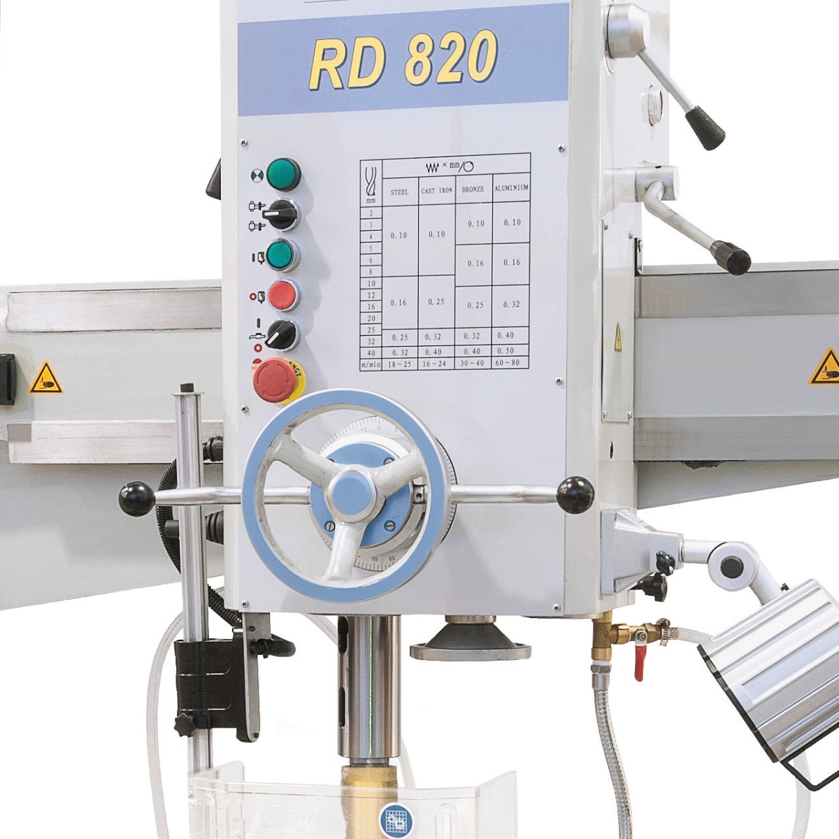 Die Radialbohrmaschine RD 820 x 32 ist eine übersichtlich aufgebaute Maschine mit hoher Leistung und einfacher Bedienung, mit der selbst schwierigste Bearbeitungsaufgaben wie Bohren, Senken, Reiben und Gewindeschneiden durchgeführt werden können.