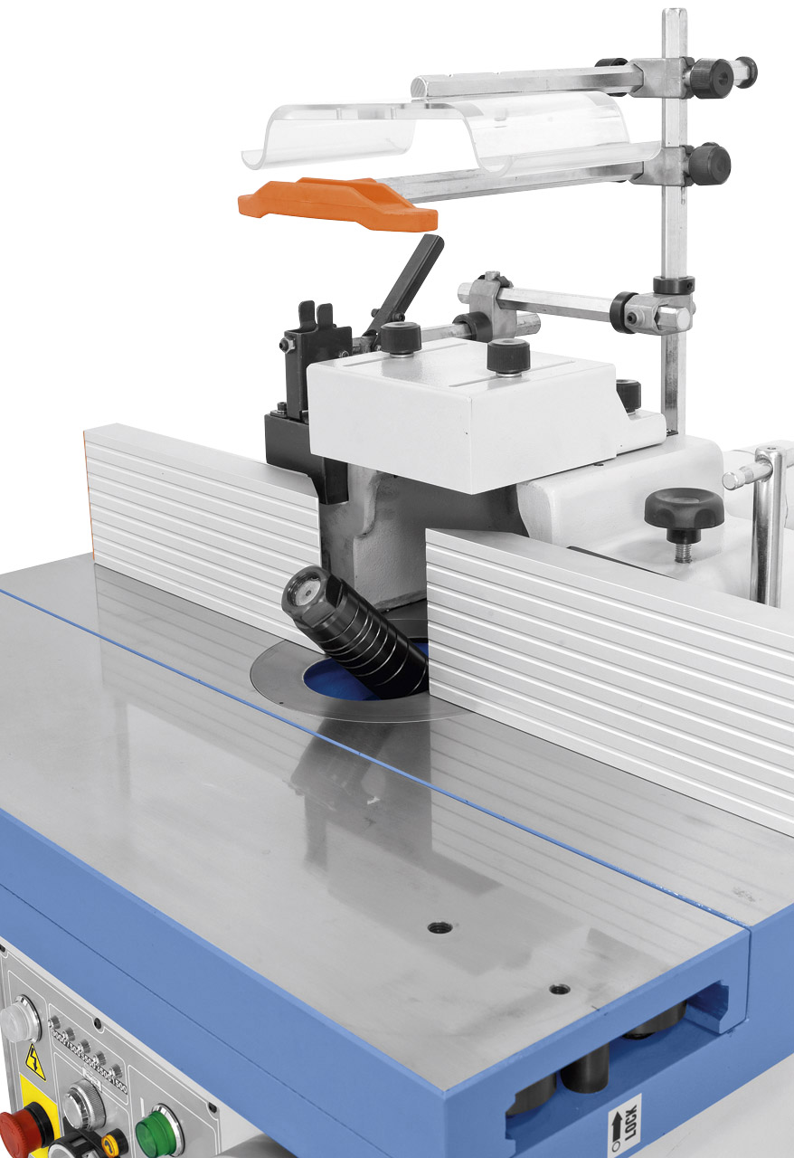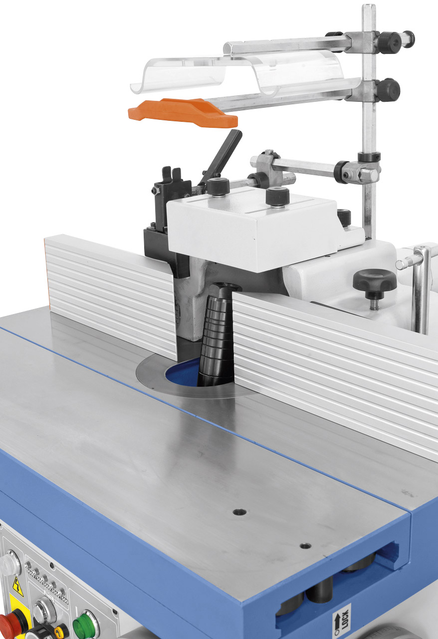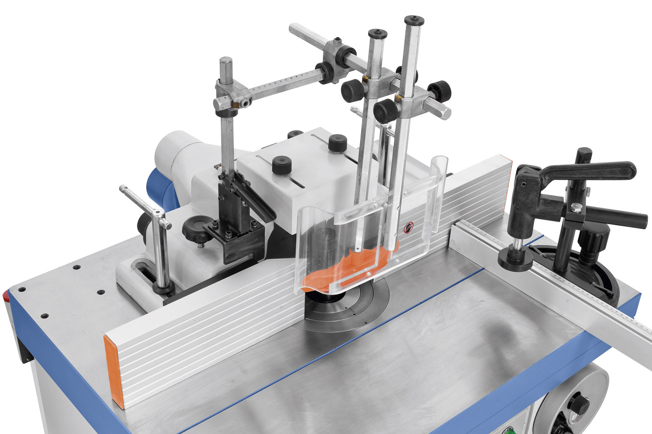 - Fräserschutzhaube mit beidseitig feineinstellbaren Aluminium-Anschlagschienen