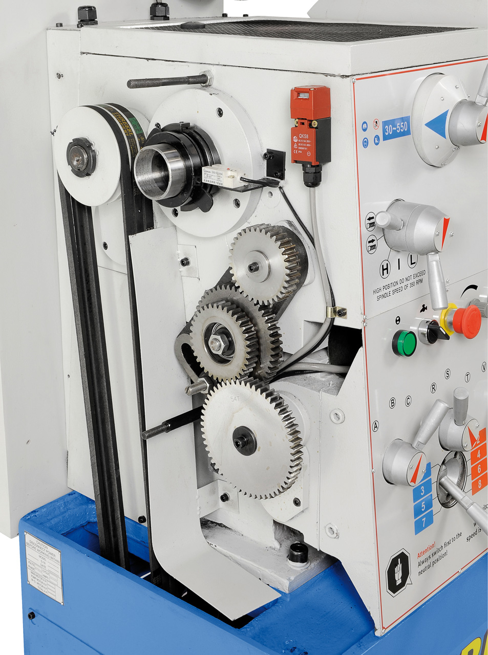 - Die Drehzahl- und Vorschubeinstellung ist einfach aufgebaut, leichtgängig und präzise schaltbar