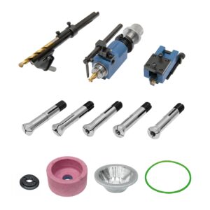 - Umfangreiches Standardzubehör: Aufnahme für Spiralbohrer, Schaftfräser und Drehmeißel, Diamantscheibe, Spannzangen, …