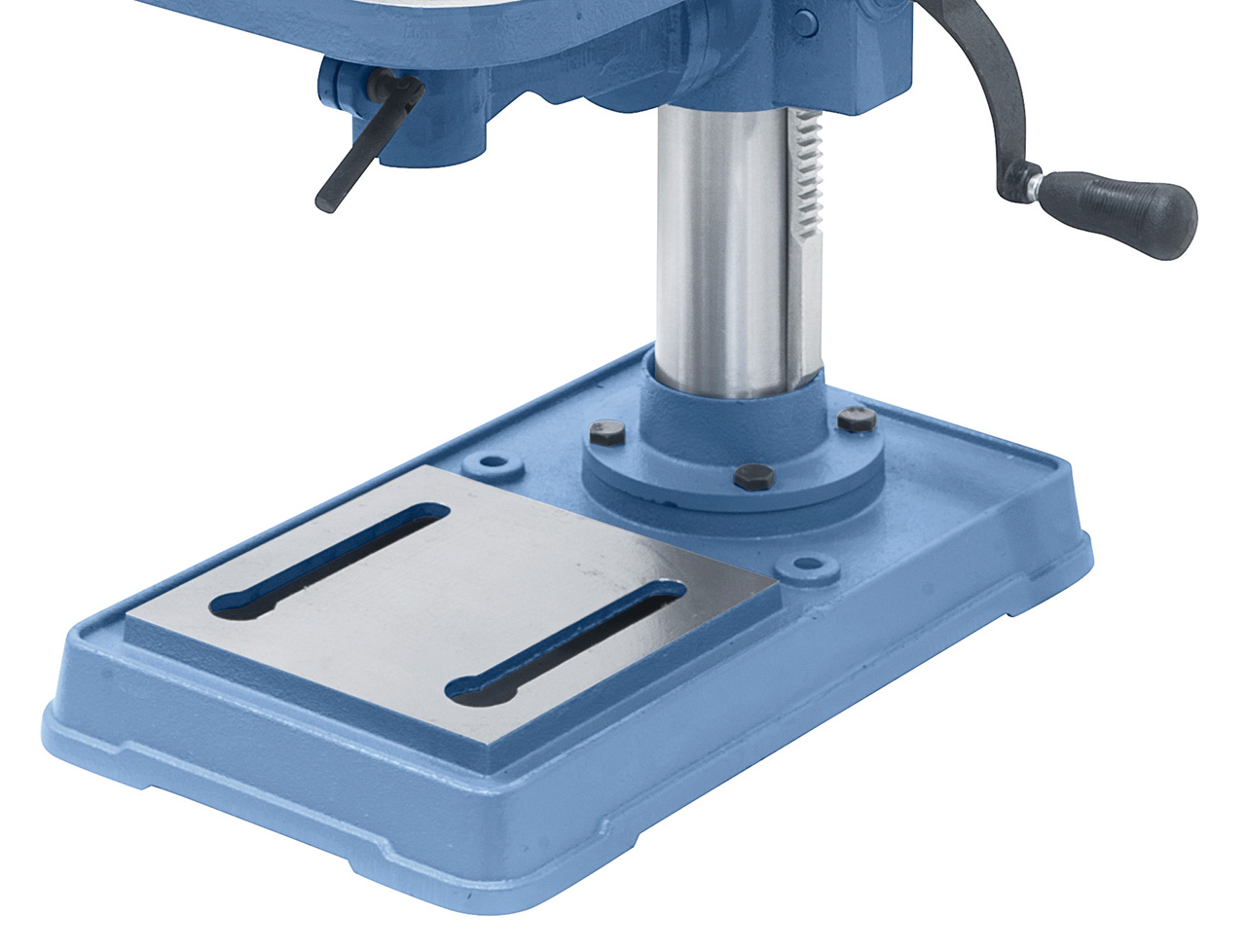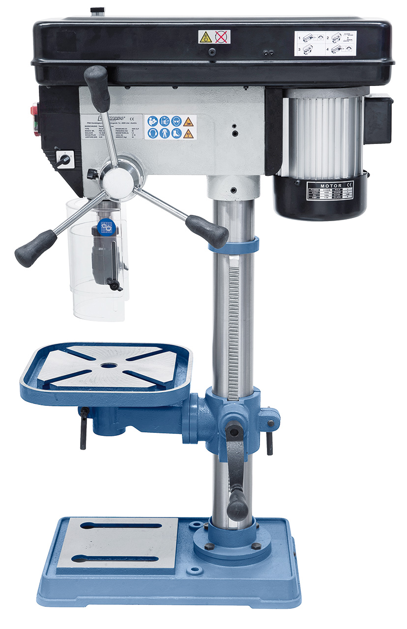 • Bohrtisch schwenkbar (± 45°), Höhenverstellung über Zahnstange