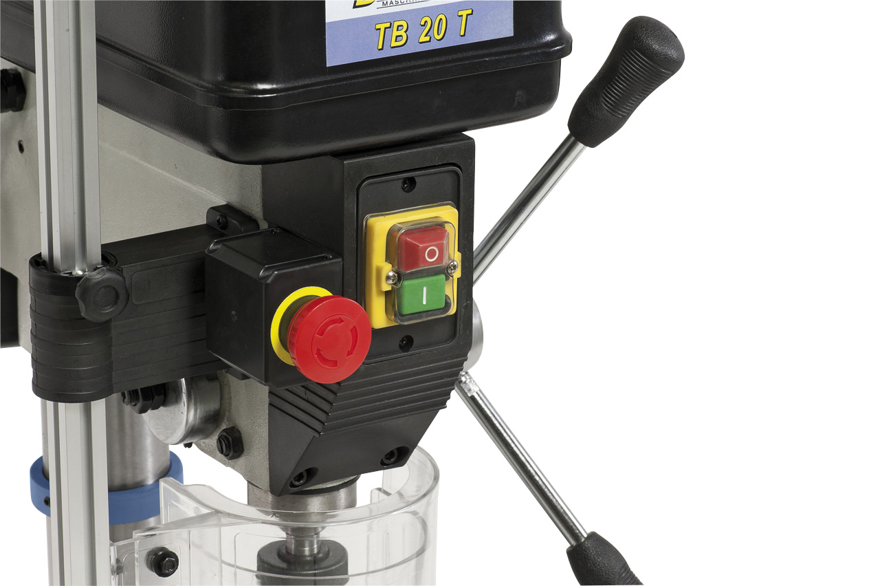 Die preiswerte Tischbohrmaschine TB 20 T mit Keilriemenantrieb ist wahlweise mit 230 V bzw. mit 400 V lieferbar. Dieses Modell ist serienmäßig mit einer Rechts-Linkslaufeinrichtung ausgestattet. Durch das überzeugende Preis-Leistungsverhältnis ist dieses Modell die ideale Lösung für Hobby-Heimwerker.