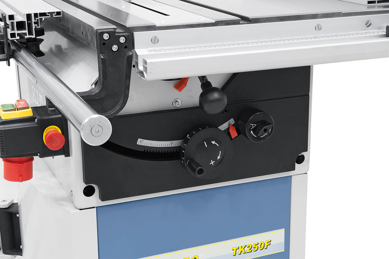Die leistungsstarke Tischkreissäge TK 250 F ist serienmäßig mit einem Schiebeschlitten inklusive Besäumrahmen und einer Zugkreissägeeinrichtung ausgestattet. Durch die umfangreiche Grundausstattung und den flexiblen Einsatzmöglichkeiten wird dem professionellen Anwender ein optimales Preis-Leistungsverhältnis geboten.
